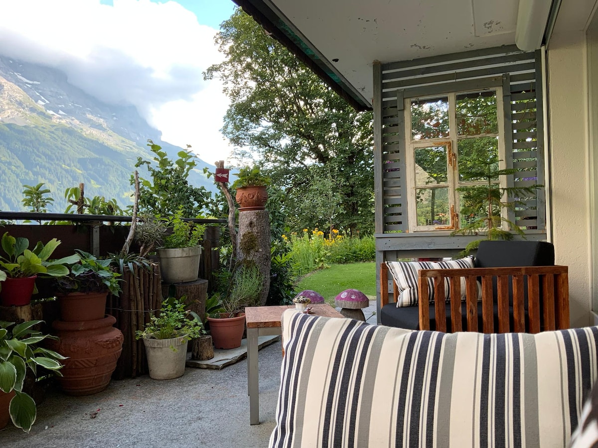 Cosy and well equipped appartment right in the skying or hiking area. Wonderful balcony facing the Eiger north face, in a charming Chalet. The appartment can be combined with two other appartments. Private parking and playground. Private ski depot.