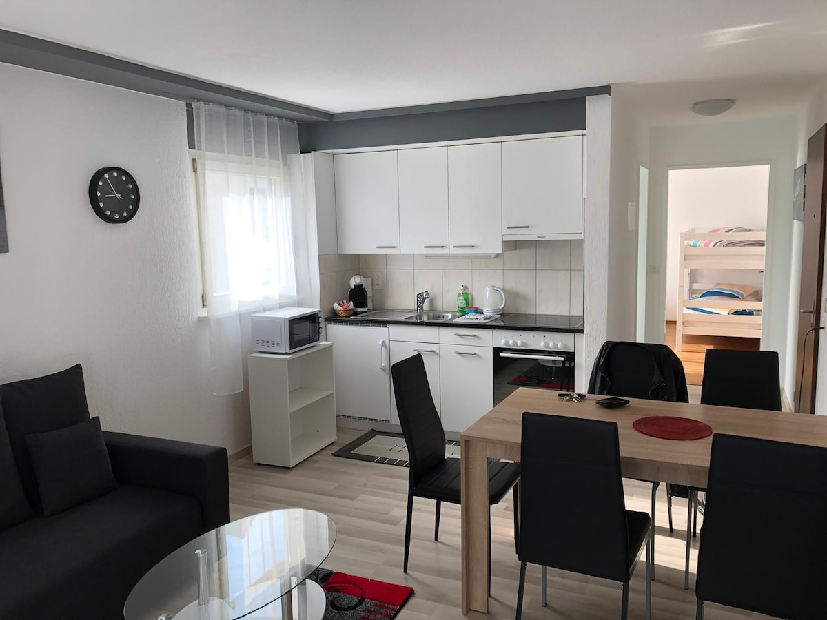 Entspann dich in dieser Unterkunft. 10 Kilometer von Interlaken entfernt. Geniesse den Ausblick in die Berge und See. Viele Wander- und Ausflugmöglichkeiten ins Berner Oberland. Ruhige Wohngegend für ruhige Gäste. NICHTRAUCHER LIEGENSCHAFT: Rauchen ist in der Wohnung / Balkon verboten (auch Shisha ) CHECK - IN von 17.00- 21.00 , ChECK-OUT ab 7.00. 3 1/2 Dachwohnung, 2 Schlafzimmer /Bett 160cm Küche mit Wohnbereich /Bad mit Dusche und WC Balkon Gratisparkplatz