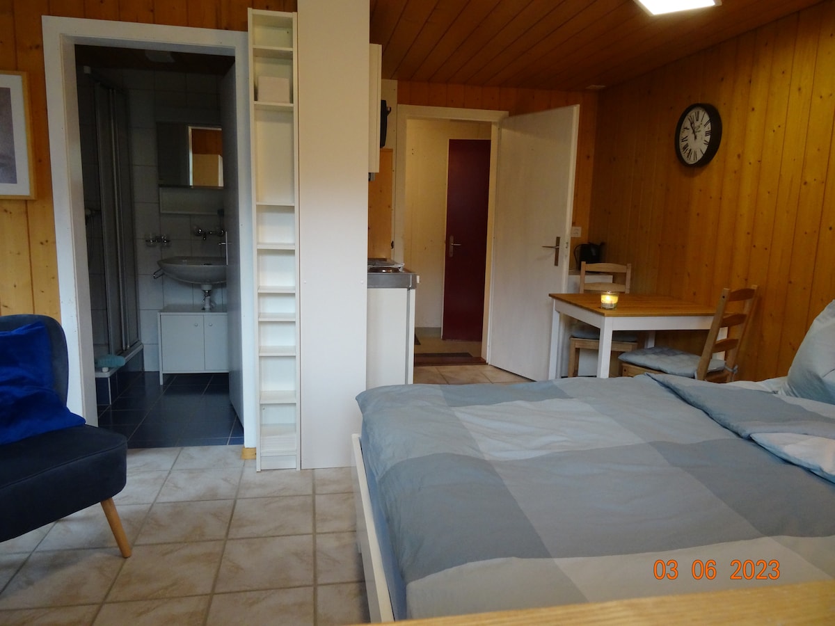 Die 1,5 Zimmer Wohnung befindet sich im 1. Stock auf einem Landwirtschaftsbetrieb im schönen Berner Oberland. Nahe an tollen Ski, Wander und Bikegebieten. Die Wohnung verfügt über ein Schlafzimmer mit Doppelbett 180×200 Ein Badezimmer mit Dusche und WC. Küche und Wohnraum sind in einem Raum. In der Küche ist das nötigste Geschirr vorhanden sowie auch eine Nespresso Kaffeemaschine. Wir sind ein bisschen fernab vom Dorf , daher müssen Gäste ohne Auto ca. 15 min. zu Fuß rechnen bis ins Zentrum.