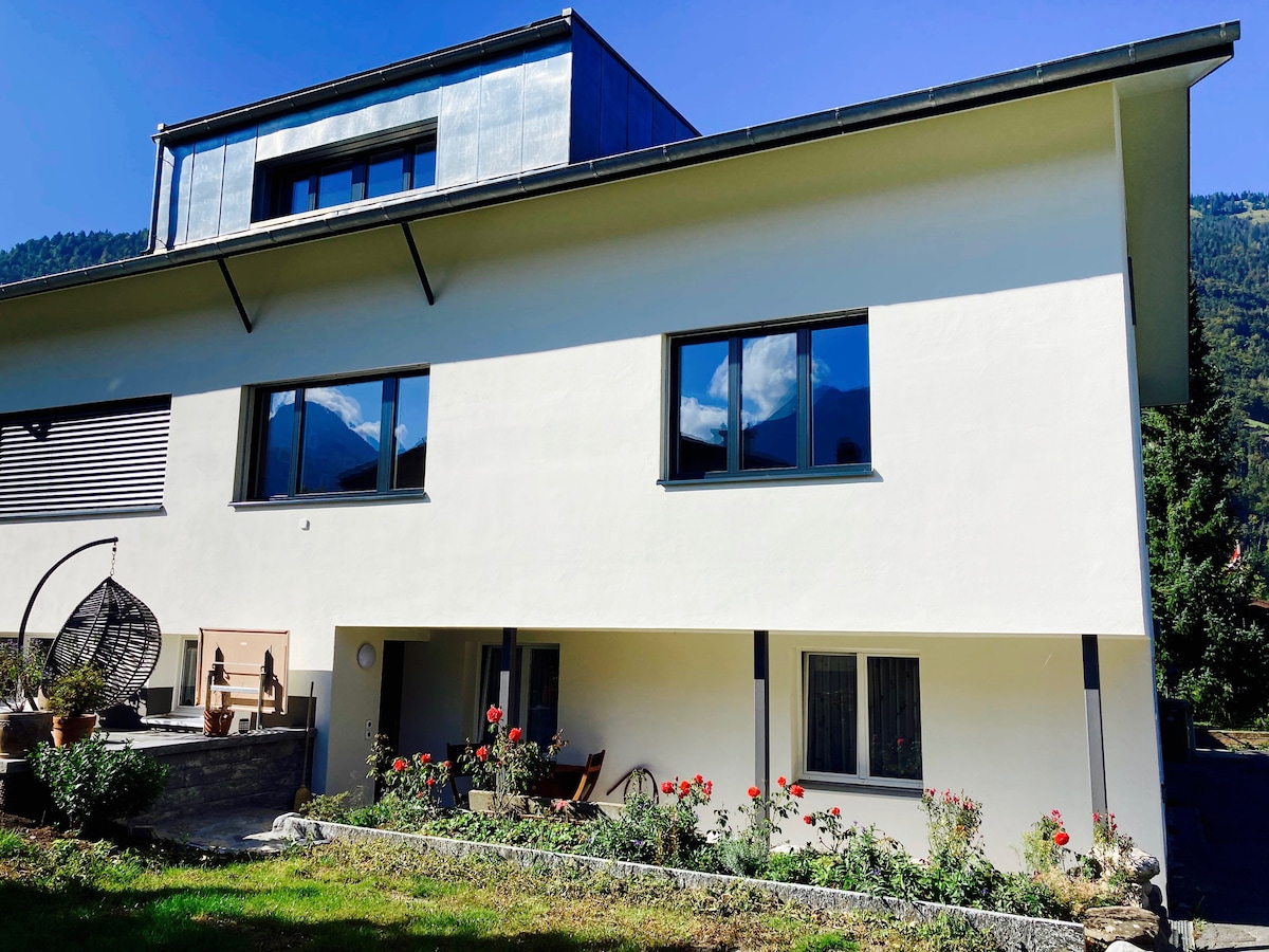 Welcome to our Chalet in Ringgenberg. Our Chalet is situated in a quiet and friendly residential area. By public transport, only about 7 minutes away from Interlaken. The bus stop, a supermarket and the lakes are only a short walk away. All tourist taxes(CHF 3.00 per person per night) and fees are included in the price. The apartement is on the groundfloor. Just feel at home, amd relax in a modern and spacious apartment.
