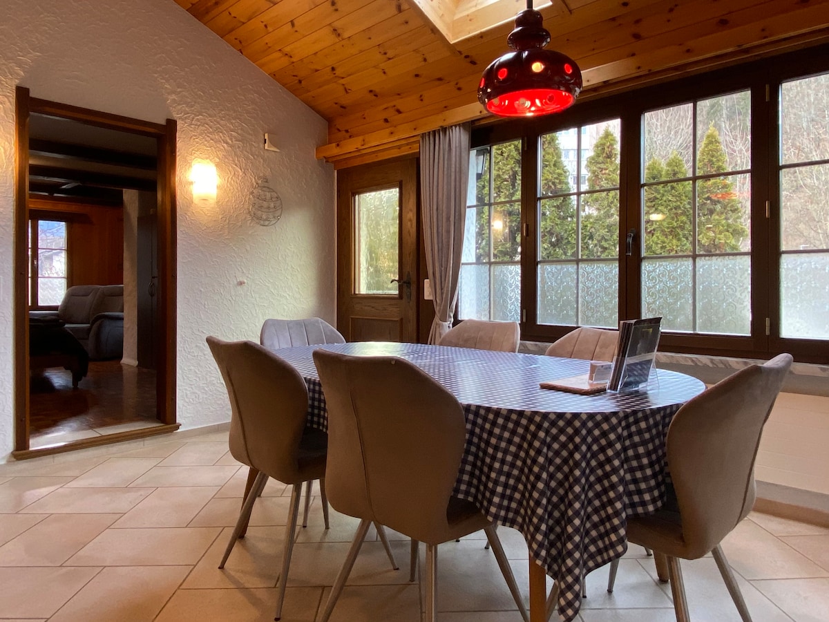 ruhige, sonnige, neu renovierte Wohnung in Holzchalet, Nähe Busstation sowie 10 Gehminuten zum Bahnhof mit traumhafter Aussicht auf die Berge. Küche in offenem Wohnraum. Im Obergeschoss Schlafraum mit 6 Betten sowie separates Badzimmer. Gartensitzplatz und Liegewiese kann mitbenützt werden. Bad- und Handtücher sind vorhanden, ebenfalls Duvet mit Anzügen, Bettlaken, Kopfkissen. Im Haus wohnt zusätzlich 1 Person in eigener 2-Zimmerwohnung mit separatem Zugang.