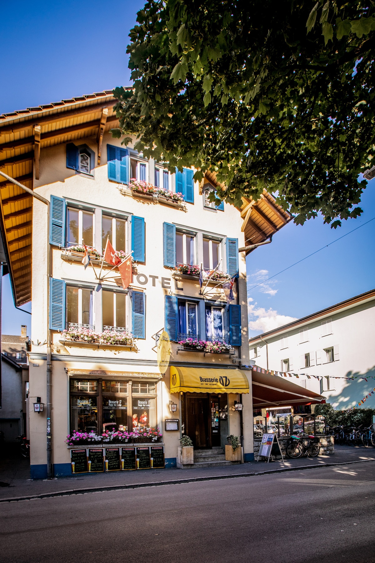 A modern youth hostel with a restaurant and the perfect location at Interlaken. You can access the entire Jungfrau region from here! As a guest at our hostel in the heart of the Bernese Oberland, you'll find public transport right at your doorstep which can take you to the most stunning sights on Lakes Brienz and Thun as well as in the Bernese Alps. From up high, wherever you go, you have a fascinating view of the Eiger, Mönch and Jungfraujoch, or the Aletsch Glacier – the largest in the Alps.