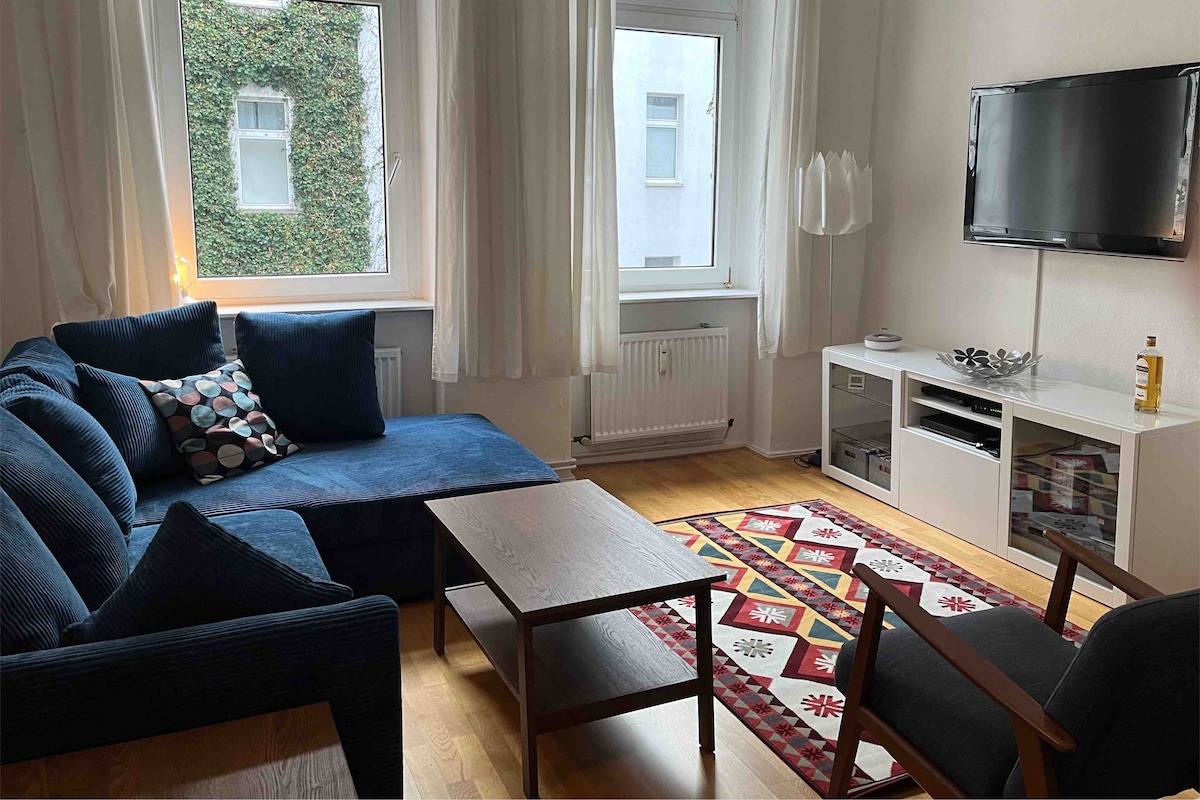 Our spacious, warm, fully-equipped, and extremely well-connected central Berlin apartment offers an oasis of calm and period charm in this exciting and vibrant city. Its back courtyard location guarantees a good nights sleep in either the spacious master bedroom or our other bedroom with two single beds. The living room sofa can also be pulled out if you need it, and there is a baby bed. Free Wifi, large kitchen and bathroom, washer / drier, and lovely living / dining room. You will love it.