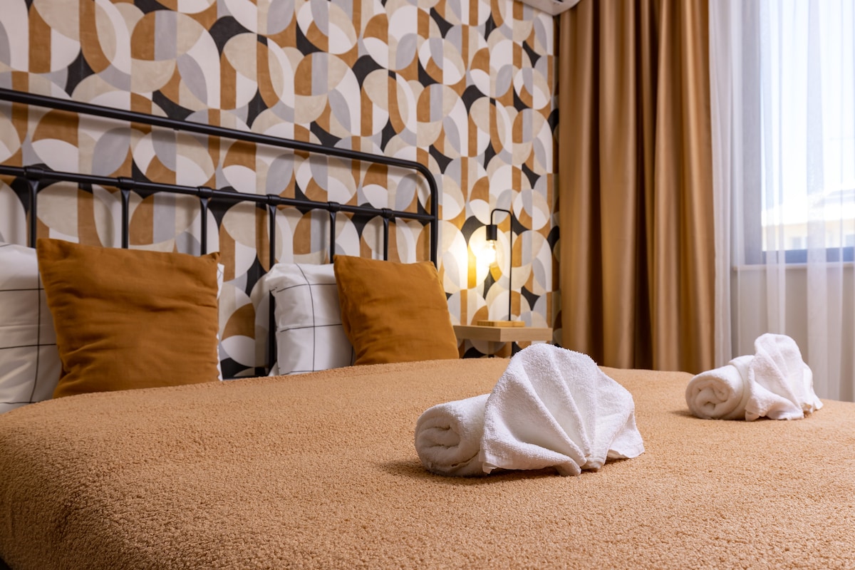 Newly renovated apartment, furnished and decorated in "Boho chic" art style, fully equipped, fast internet connection, located in a quiet residential area next to parks, supermarkets, bakeries, restaurants and shops, a 24/7 coffee shop, a pharmacy, a cinema, a farmers market. Situated cca 10 -15 min walking distance to the very heart of Plovdiv, the Old town and Kapana art district. Enjoy your holiday in Plovdiv in the comfort of that stylish and cozy place!