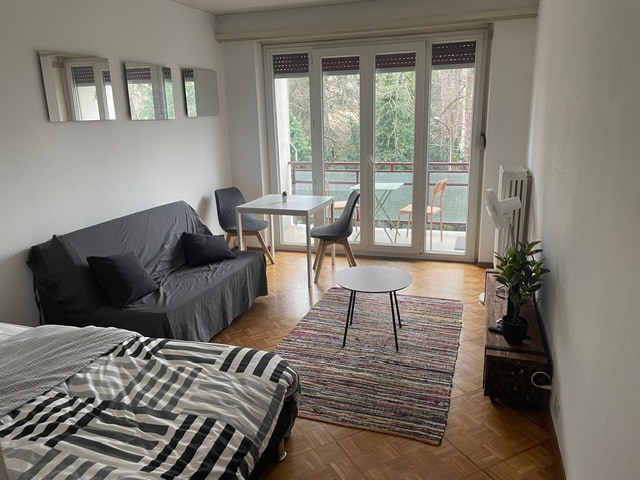 Studio cosy au cœur de Genève, idéal pour 2 personnes (possible jusqu'à 4). Situé à quelques minutes à pied des organisations internationales (ONU, OMS..) et à 2 arrêts de bus de la gare. Parfait pour un séjour pratique et confortable ! Equipements: Fibre optique, TV connectée, cuisine équipée, machine à café, lave-linge et balcon avec table et chaises. Commodités: Arrêt de bus au pied de l’immeuble, supermarché à 2 min. Linge de bain fourni. Wi-Fi gratuit. Non-fumeur (sauf balcon).