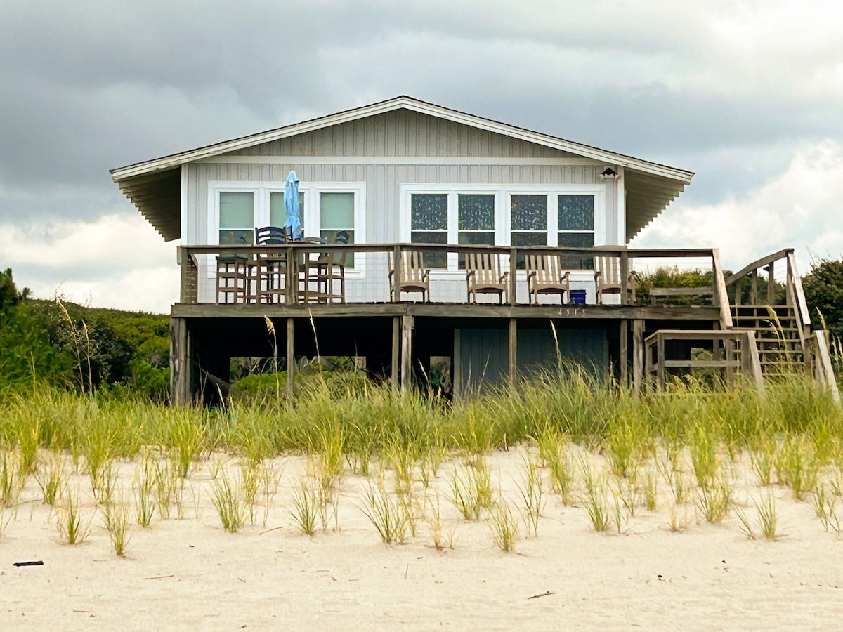 Original beachfront cottage on Holden Beach, just steps from the sand and water. Enjoy the dolphins and shorebirds from the rockers on the covered porch. Cozy studio has been renovated with thoughtful upgrades. Kitchen is fully stocked including coffee maker, spices, condiments, and premium cookware. No stairs, ground-level are ideal for children, older guests, and pets (pet fee collected separately). Lots of amenities and beach items are provided for your comfort and convenience.