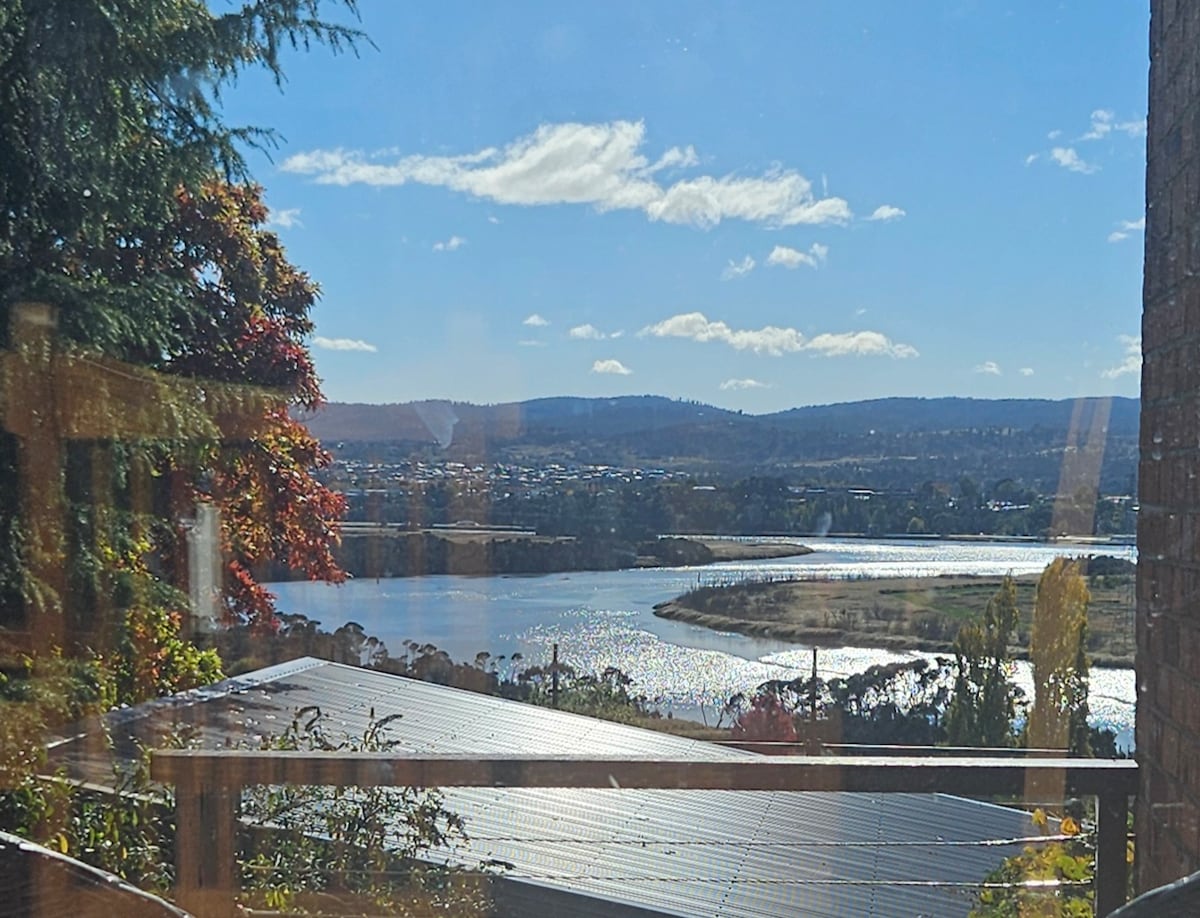 A stylish, sun-filled townhouse just minutes by car from the city centre. Stunning views of Launceston and the Tamar River can be seen through the treetops and in the distance forested mountain slopes. Across the road, a trail leads down through Cataract Gorge. The classy, well-stocked library has a comfy sofa, and a dedicated workspace with desk and chair. A sunny deck beckons. Fast wifi and quality Smart TV with streaming services are available. Eclectic, original art throughout.