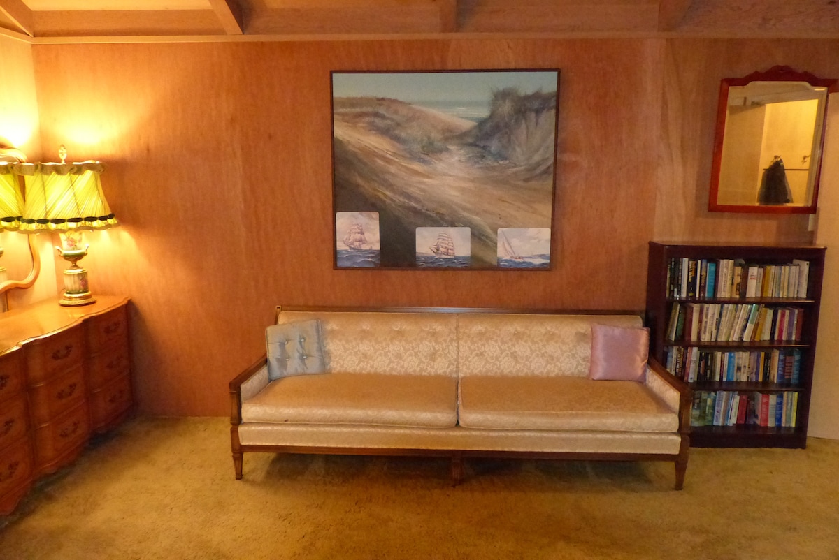 Entering the upstairs you will find a large living/dining/kitchen space constructed of huge beams, wide plank fir floors from wood milled on the property, a bank of windows with a bird's eye view of the forest and a large stained glass window. A fully equipped kitchen and stocked pantry allows you to cook up the bounty of Point Reyes farmers and purveyors on our vintage O’Keefe and Merritt stove. There is a dishwasher, microwave, toaster, mixer, coffee maker and blender. A Balinese dining table of coconut wood and tiger bamboo seats 6. The living area offers a comfortable pullout couch with a memory foam mattress. There is wifi and a smart TV with steaming Netflix, Hulu Plus and Amazon prime. Or enjoy any of the DVDs from our small library. A stereo tuner with an aux cable allows you to stream music from your 2.5mm jack equipped device. A deck off the living room has a table, chairs and a small gas BBQ. Also on the main floor is a sunroom with floor to ceiling glass and a glass roof, Balinese bamboo furniture, breakfast table and a side deck. The bathroom has a claw foot tub and shower. There is central heating with the thermostat located in the living area.
