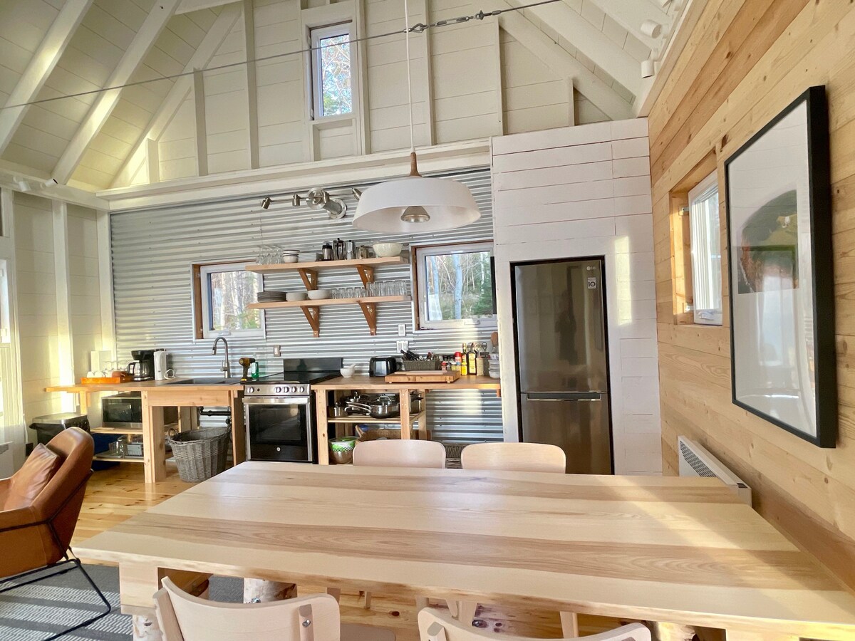 Slow down and discover an enchanted place full of warmth, charm and distinctive amenities. Chic cabin, surrounded on three sides by woods, with a spectacular view of the Cape Breton Highlands. Just off the famous Cabot Trail, blocks from the sea, though still within town, enjoy quiet and convenience. Wood fired hot tub and pizza oven. (Wood provided) Five minute walk to the lovely L'abri restaurant and bar, just a little further to The Doryman music venue.