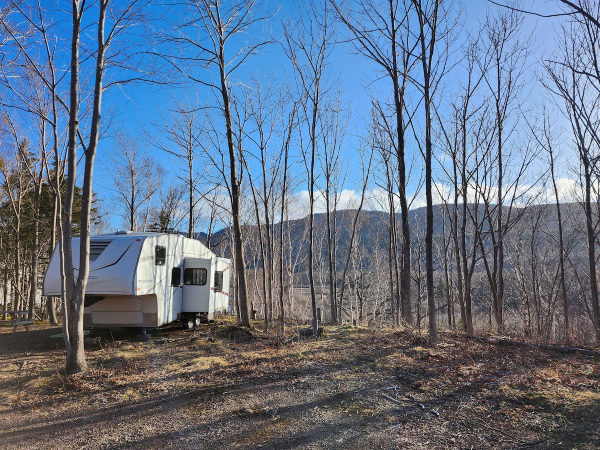 If you are looking for a camping experience but do not want to rough it, try our clean, well-kept, 33-foot RV. Trailer has a queen sized master bedroom and bunk beds in rear, livingroom, indoor and outdoor kitchen. Enjoy the evening roasting marshmallows at the firepit or take a stroll to the waterfalls which are 100m away. Travel 20mins to Grand Narrows/Iona to enjoy a day at the beach. Located in central Cape Breton within 1 hour drive of golfing, museums, site seeing, restaurants and more.