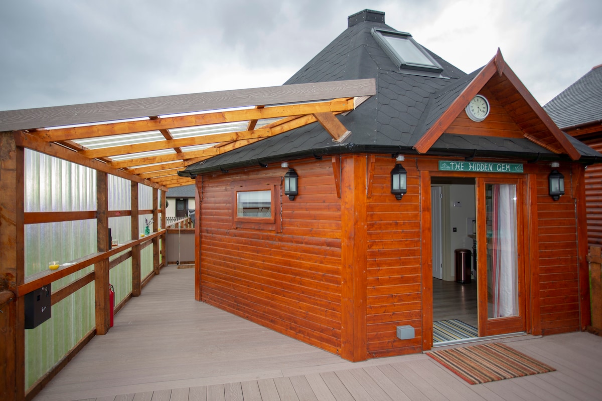 NO ANIMALS , The Hidden Gem is situated next door to our home Archwood lodge as seen on series 5 Scotlands Homes of the Year. A stunning new self catering chalet that can accommodate 4 people, set in thee most amazing hideaway location with panoramic views of Ben Nevis and the surrounding mountains, very easy access to Nevis Range for those who love skiing, hill walking and mountain biking. Private parking, fast internet, decking to relax on and take in the views, sheltered outdoor seating.