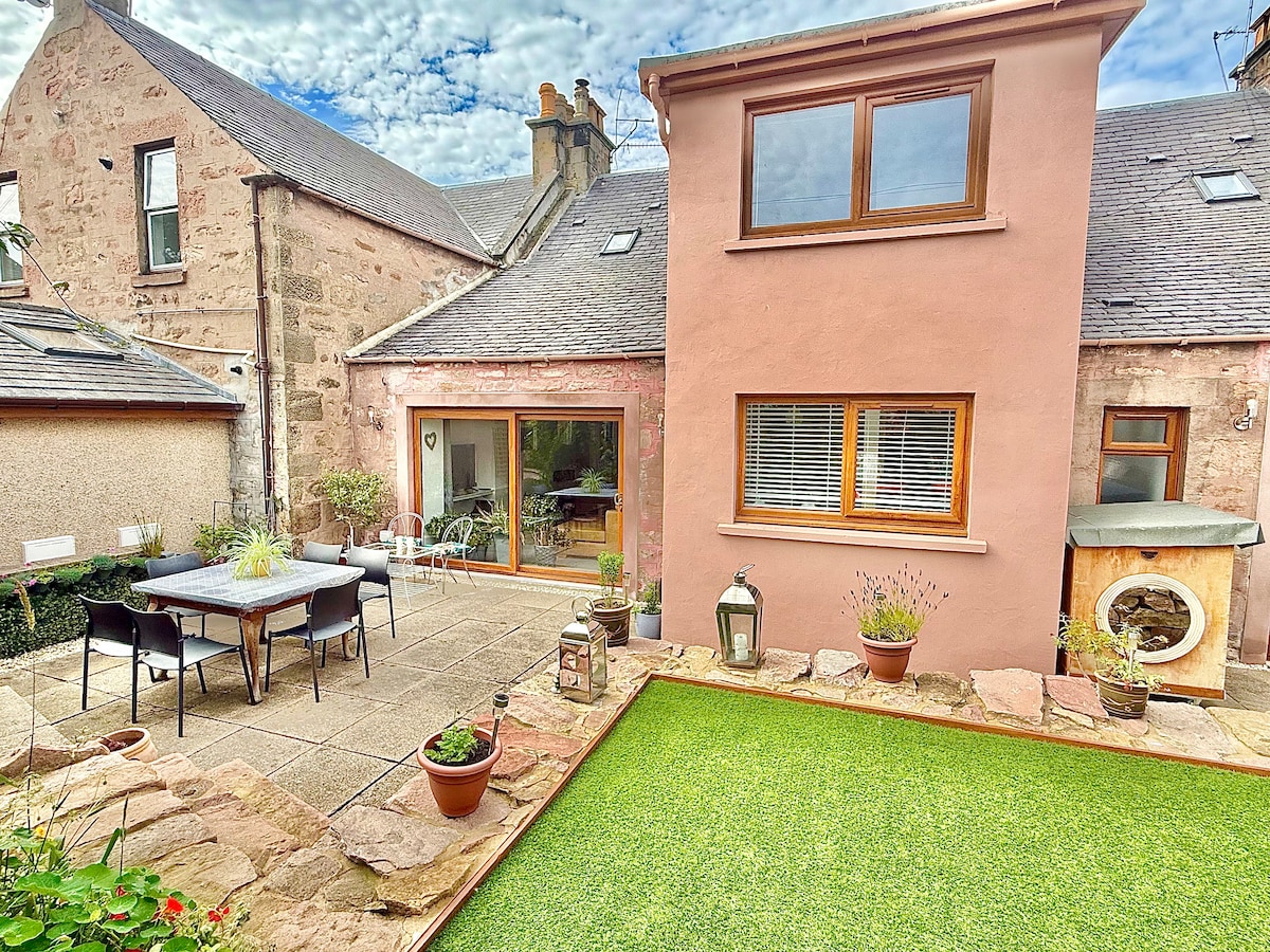 The terraced cottage is a very well equipped property on two floors with a garden room and upper terrace. It sits within a secluded courtyard and is quiet and peaceful while being close to the many excellent restaurants, bars and shops which Inverness has to offer. It has private off-road parking. It is situated less than 5 minutes walking distance from the centre of Inverness and is very close to the River Ness, Inverness Cathedral and Eden Court Theatre.