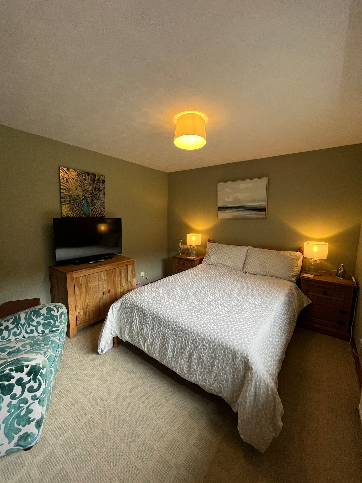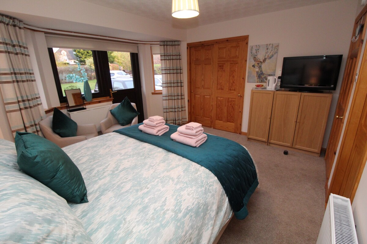 Connected to the old cruck barn this is a compact, cosy, self contained bedroom. It’s set on one side of the courtyard with separate key access so you can come and go at will. If you love the outdoors, we think you will love it here. We have spectacular views of the Cairngorms, with excellent walks from the door. Rustic, with loads of character, the room has a comfy king size bed and en suite bathroom with shower. If you need mod cons or lots of space this may not be the place for you!