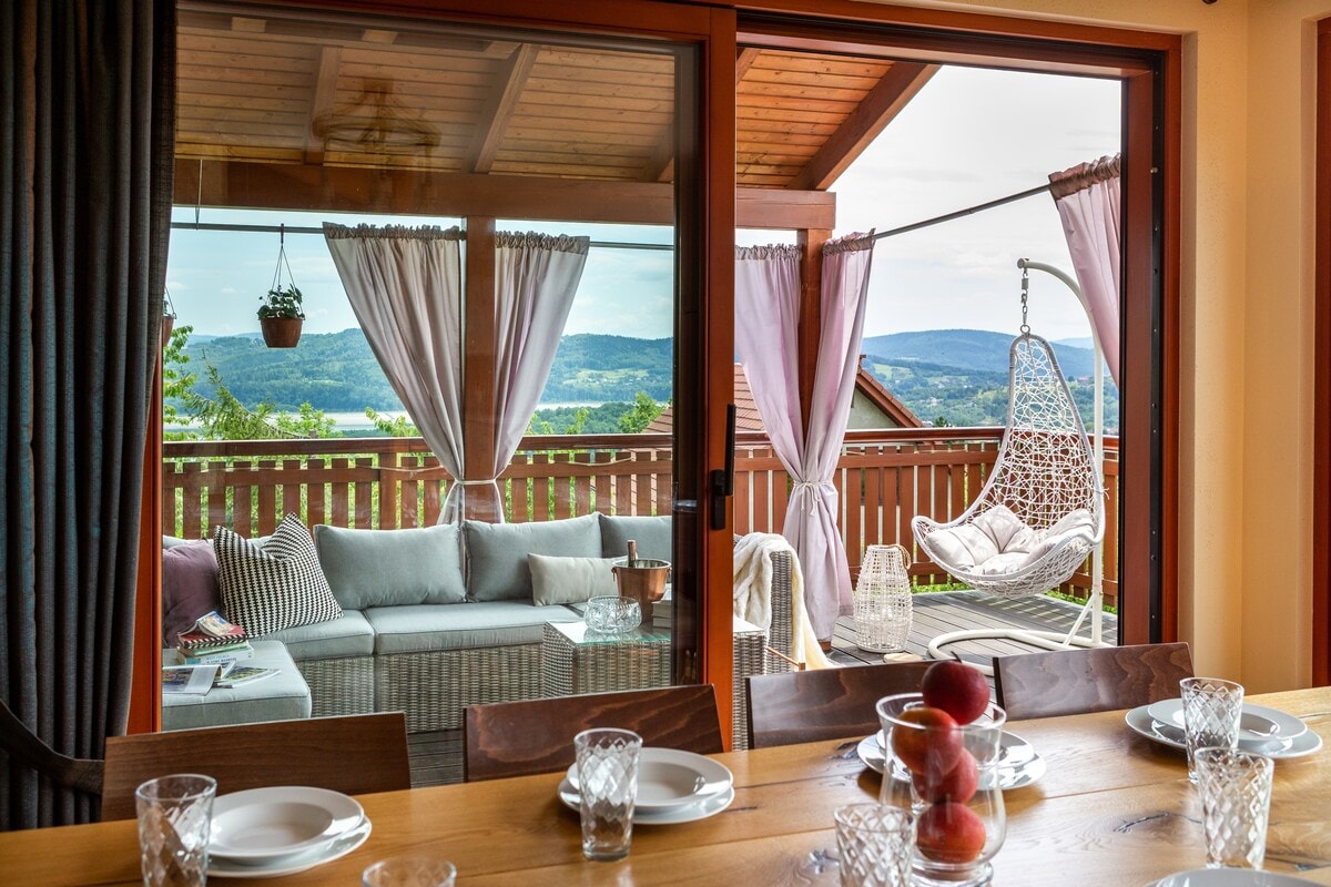 Wzgórza pełne jeleni, które nierzadko możesz obserwować wprost ze swojej sypialni lub tarasu. Bardzo nowoczesne, wypełnione przepięknymi i starannie wyselekcjonowanymi meblami z drewna egzotycznego, wyposażone w wysokiej jakości sprzęt oraz bardzo komfortowe łóżka - wnętrze. Na balkonie obok mebli i leżaków z ekskluzywnego drewna tekowego - sauna fińska. Zewnętrzny taras prowadzi Was wprost do balii ogrodowej z podgrzewaną wodą. Leżąc w łóżku lub wannie, możecie zachwycać się widokiem na góry.