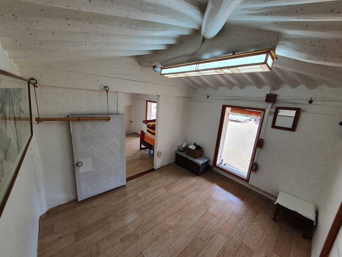 It is a 2-story newly built hanok and the host parents live on the first floor. Only the second floor space is for your own use, and the stairs to the second floor are outside. The front door is also separate Luggage storage service is available before moving in and after moving out. Please note that self-catering is not available.
