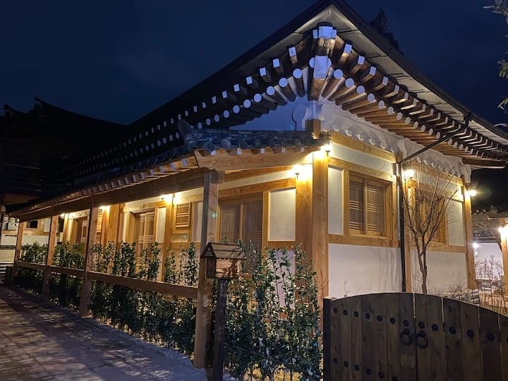 한옥의 멋과 현대적인 편리함을 모두 갖춘 이곳에서 특별한 여행을 누려보세요..레스토랑 편의점 관광지 중심에 있어 편리합니다 [이용] -기준인원 4인 ,6인까지 추천 , 최대 8명까지 숙박 가능 -인원 추가금 1인 3만원 (36개월 이상) - 1인 이불, 매트 추가 1인당 2만원 최대 2개까지 가능 (7인이상 이용시 추천) (한 침대에 2명씩 주무시면 6인까지는 커버 가능) [어메너티] -록시땅(샴푸, 컨디셔너, 바디워시, 핸드워시) -샤워 타올, 소형 타올, 핸드 타올 -비상약 [공간 구성] -거실 통창을 통해 보는 한옥뷰, 기와뷰 -포토스팟,사계절 사용가능한 실내자쿠지 -침실3개(퀸침대 3개) [서비스] -숙소 앞 주차 시설 완비(1대 주차 가능) -네스프레소 커피제공 -다도세트 -조식제공 (식빵,요플레,계절과일,라면) [구비물품] -LG TV (스탠바이미 2대) -다이슨 에어랩(롱배럴) -냉장고 -드롱기 전기포트, 토스트기 -전자레인지 -와인잔, 오프너, 식기류