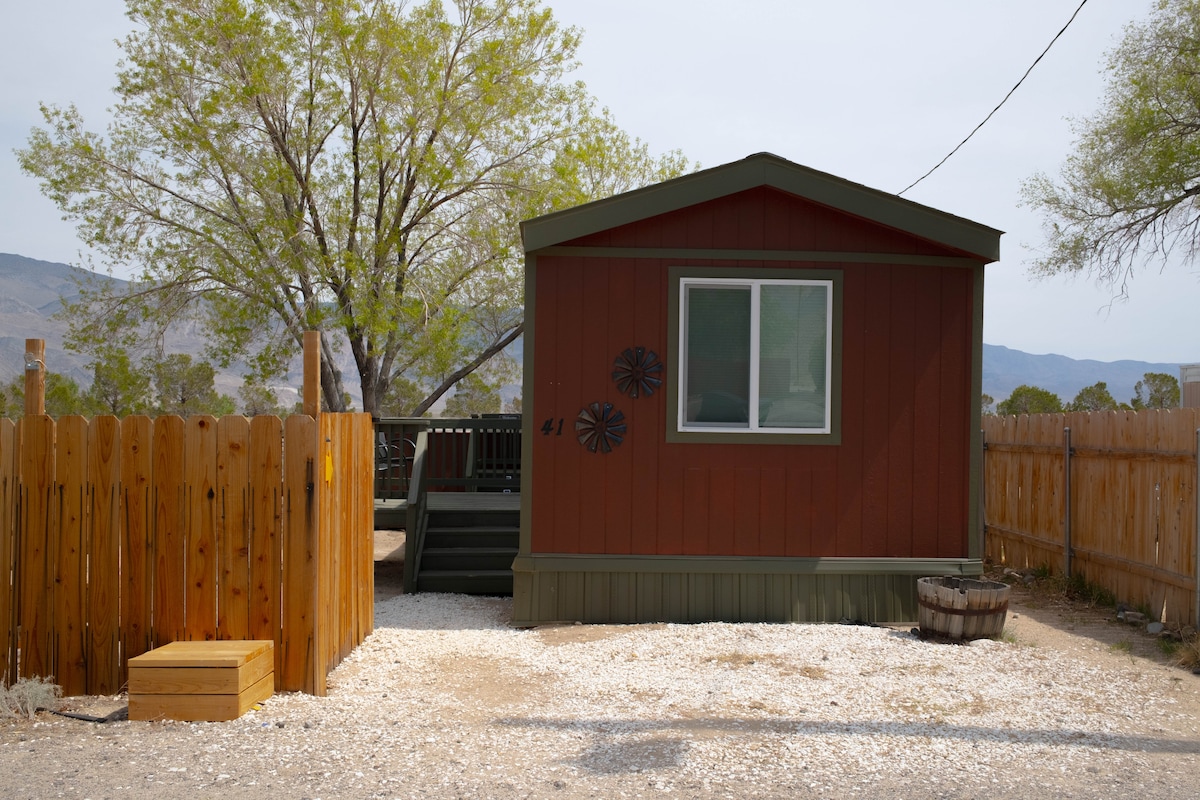 At the foot of the Funeral Mountains, just outside Death Valley National Park, this tiny home is a great basecamp for adventures. Death Valley, Ash Meadows National Wildlife Refuge, Rhyolite Ghost Town, and Beatty are just a short drive away. Our secluded 4+ acre property has few neighbors and is adjoined by thousands of acres of public land to explore. Hike the Funeral Mountains with abandoned mines right from the front door or visit "Big Dune" Recreation Area just 6 miles away.