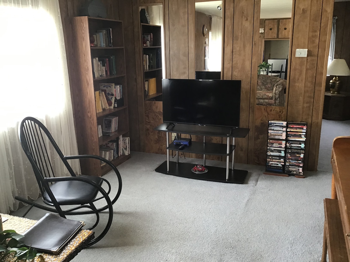 Your room is nicely furnished with a new grey, warm comforter, new black sheets, plenty of pillows and light blue carpeting. A nice tree lights up. There is a lamp, a clock and a mirror, which are all new. Your walk-in closet has hangers and shelves. There is a wooden desk for working on your laptop, using our free Wifi. Your room has black-out curtains. Coffee and hot chocolate are served each morning along with a light breakfast. Thank you so much for your interest, and we will see you soon.