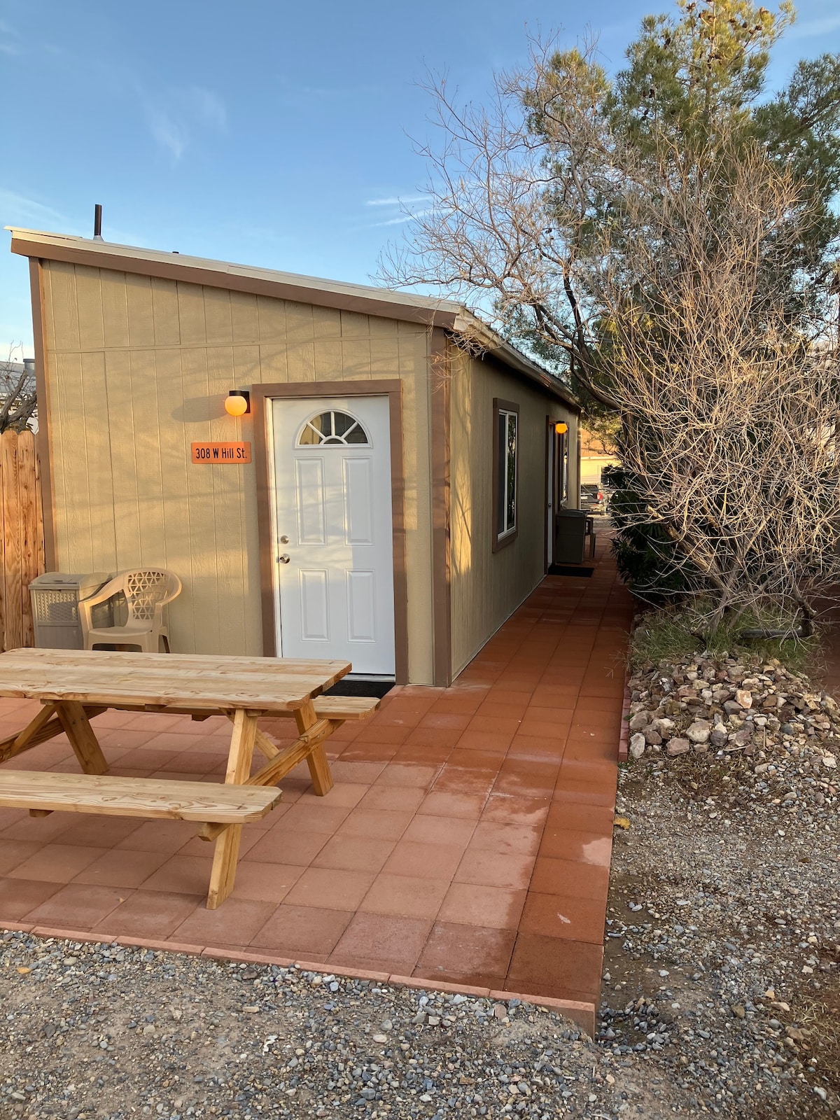 Pahrump "Sun Guest House" is located between Las Vegas & Death Valley. It is near Front Sight Gun Training Institute, Red Rock Canyon Nat'l Park & Spring Mountain Raceway. Fully fenced and gated property. Free parking inside gated yard. There is a private kitchen and private bathroom, coffee pot, refrigerator and all cooking and dining sets. The cabin is newly remodeled in 2018 with new wood floor. Newly painted interior and exterior, new AC unit, and all new furniture