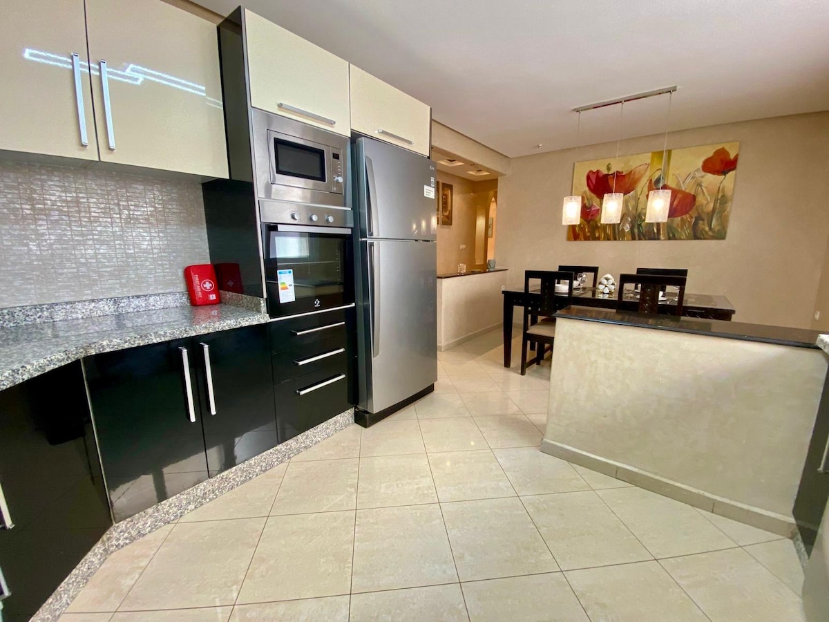 Retraite Tranquille | Moderne | Climatisé | 15min Plage | Wifi | Netflix | 15min Stade Adrar Agadir Bienvenue dans notre appartement moderne et neuf situé dans un quartier sécurisé proche de toutes commodités. Il comprend deux chambres confortables, un salon chic avec TV connectée et Netflix, une salle de bain propre et une cuisine équipée. Vous apprécierez son atmosphère chaleureuse qui vous fera sentir chez vous dès votre arrivée 🧾 Une facture de réservation est disponible pour votre séjour