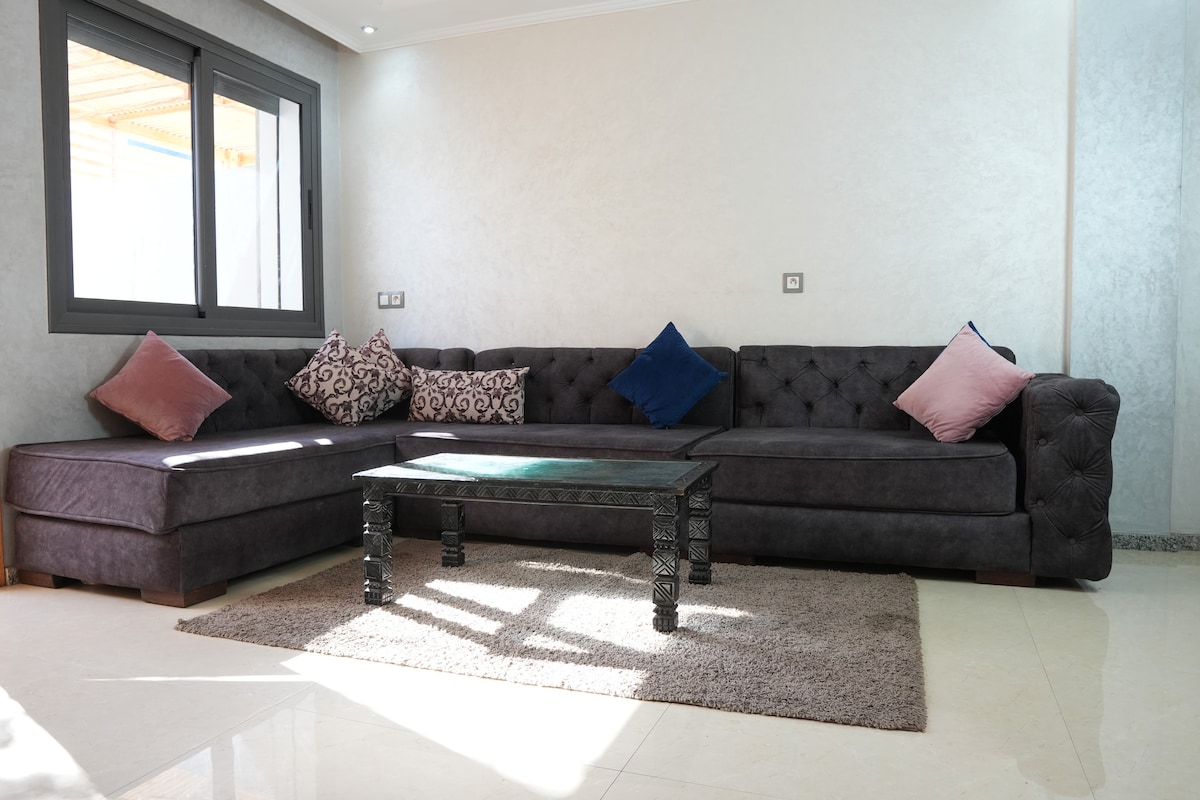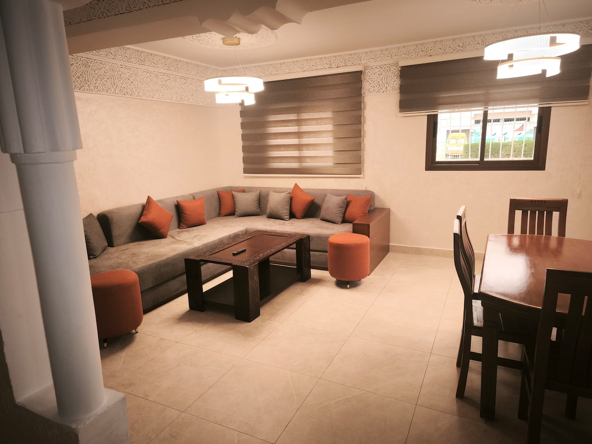 This dwelling is situated amidst upscale villas and features a private external entrance. It is located in a strategic area in Agadir, with banks just 20 meters away, cafes at 50 meters, a women's salon at 20 meters, and a grocery s. Accommodation Apartment Room House Resort Chalet Serviced apartment Short-term rental Vacation rental Booking Rent Beach City Mountains Park Heritage Tourist attractions Shopping center Airport Train station Amenities View Furnished