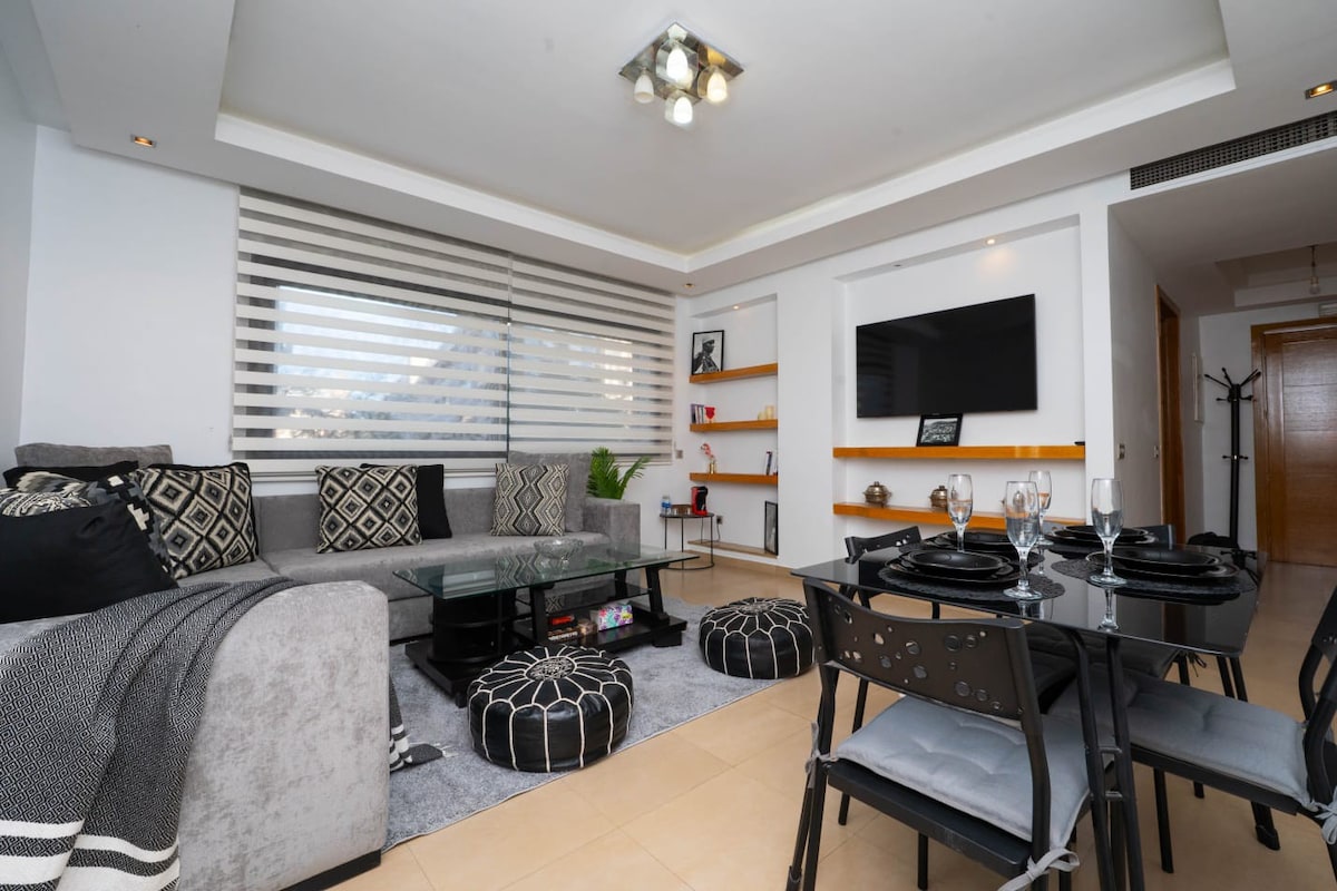 Relax and chill in this cosy home, just steps away from the beach. Welcome to your home away from home! This stylish and inviting 2-bedroom flat is perfect for your next getaway, situated in a secure residence just a 5-minute walk from the beautiful Agadir beach. Nestled in the heart of the bustling tourist area, you’ll find yourself surrounded by local attractions, shops, and delicious dining options.