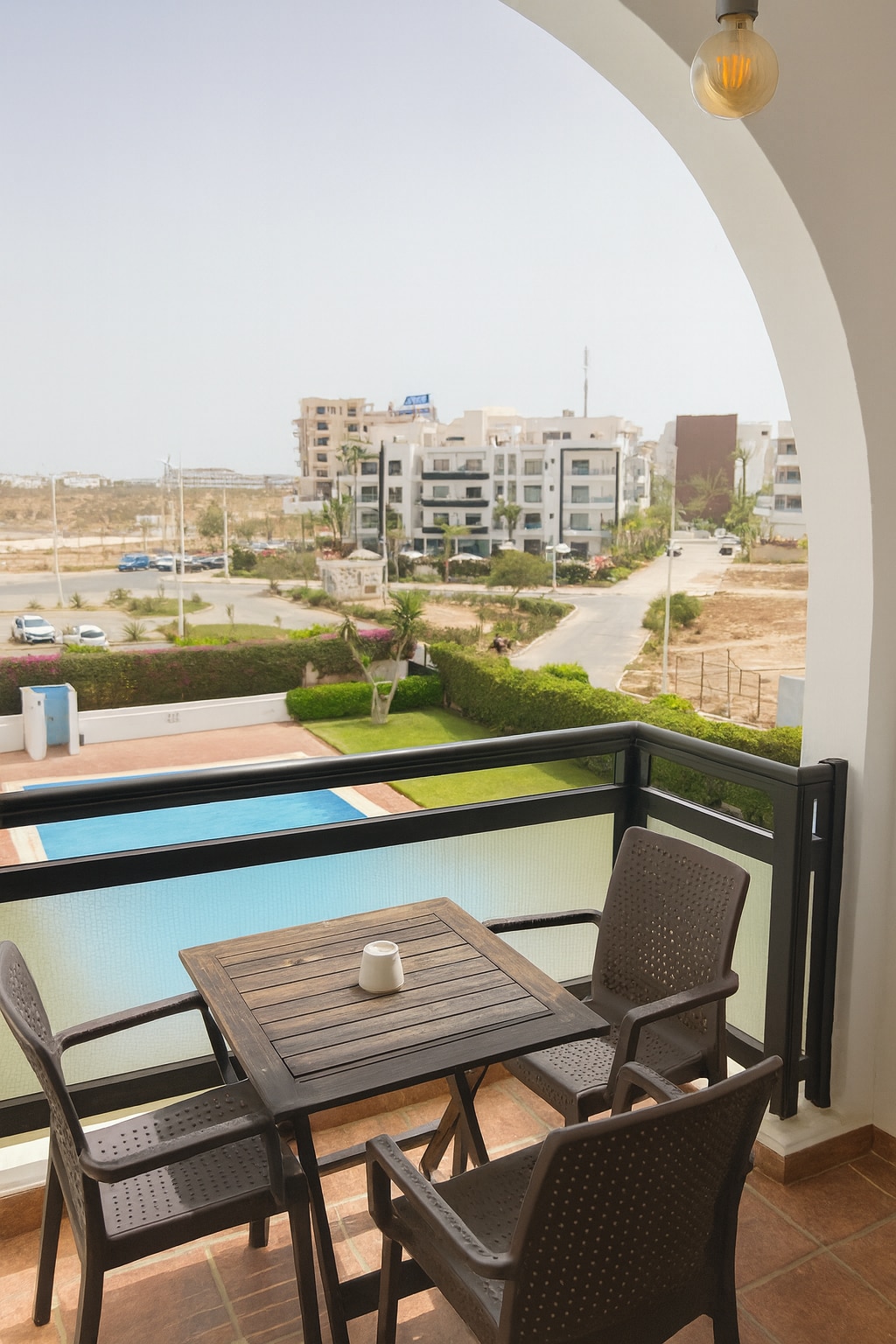 Détendez-vous dans cet appartement calme et élégant, situé dans une résidence sécurisée avec piscine. Spacieux (64 m²), il comprend une chambre, un salon avec espace de travail, balcon, cuisine équipée, fibre optique et IPTV (chaînes internationales, films, séries). Linge de lit fournis. couples marocains non mariés interdits. Idéalement situé, proche de toutes commodités (supérettes, cafés, restaurants), parfait pour un séjour reposant. Piscines non disponibles jusqu’à mars 2026