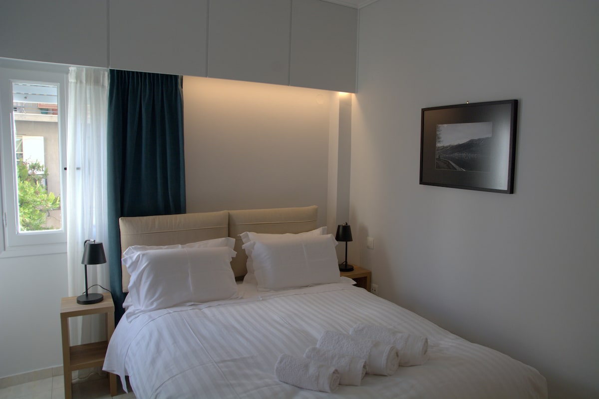 Διαμέρισμα 55 τετραγωνικών με δύο υπνοδωμάτια και δύο τουαλέτες, στην καρδιά της πόλης. Δεν διατίθεται για πάρτυ και συγκεντρώσεις, μόνο για φιλοξενία. 55m appartment with two bedrooms and two wc, in the center of the city ! Υπάρχει η δυνατότητα κλειστού parking με χρέωση 10 ευρώ ανά ημέρα. Έξτρα χρέωση 10 ευρώ για κατοικίδια. There is a private parking for 10 euro per day! Extra charge 10 euros for pets.