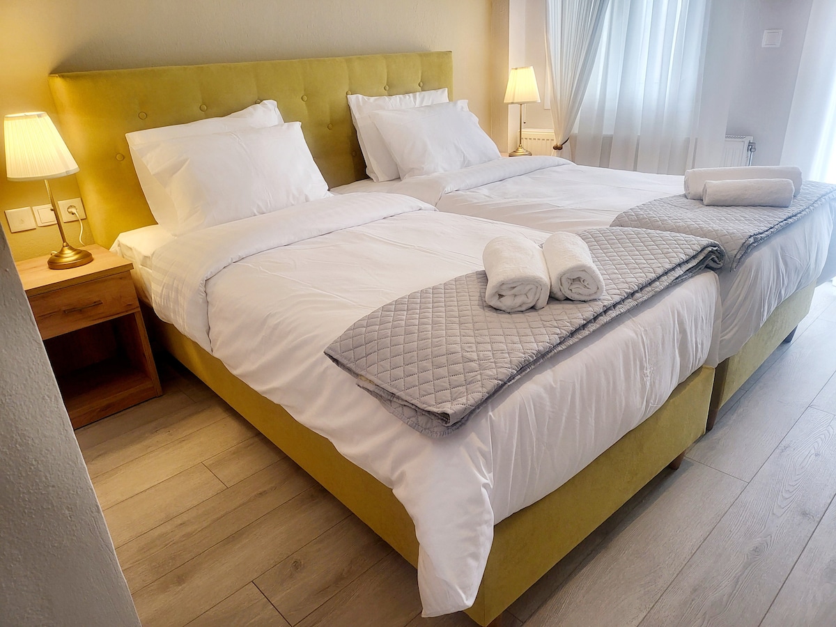 Πολυτελές διαμέρισμα 50 τ.μ., με μοντέρνο σχεδιασμό, στο κέντρο της πόλης των Ιωαννίνων. Ανακαινισμένο το 2022, ο χώρος μας παρέχει όλες τις ανέσεις και παράλληλα προσφέρει ένα ήρεμο και χαλαρωτικό περιβάλλον. Κατάλληλο για ζευγάρια, παρέες, οικογένειες και επαγγελματίες, με όλες τις σύγχρονες παροχές. Παρέχει διπλό κρεβάτι και γωνιακό καναπέ που γίνεται διπλό κρεβάτι.