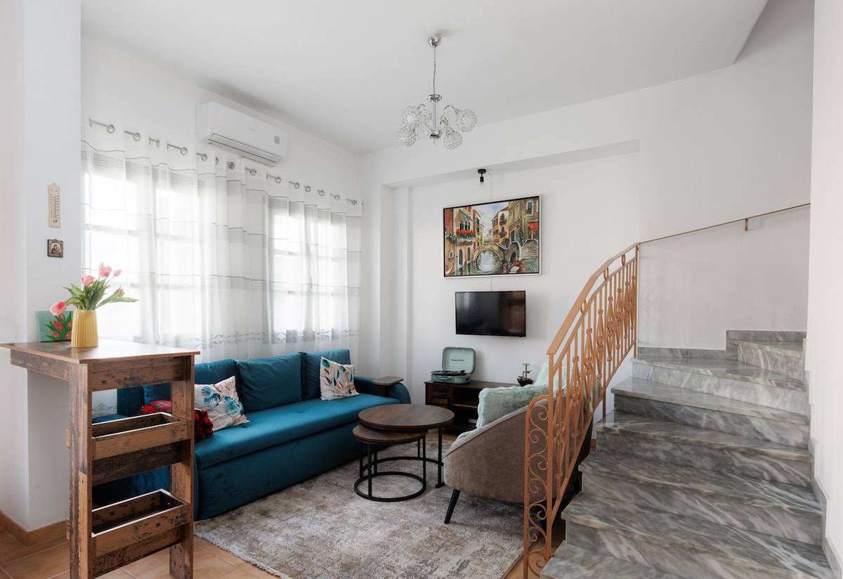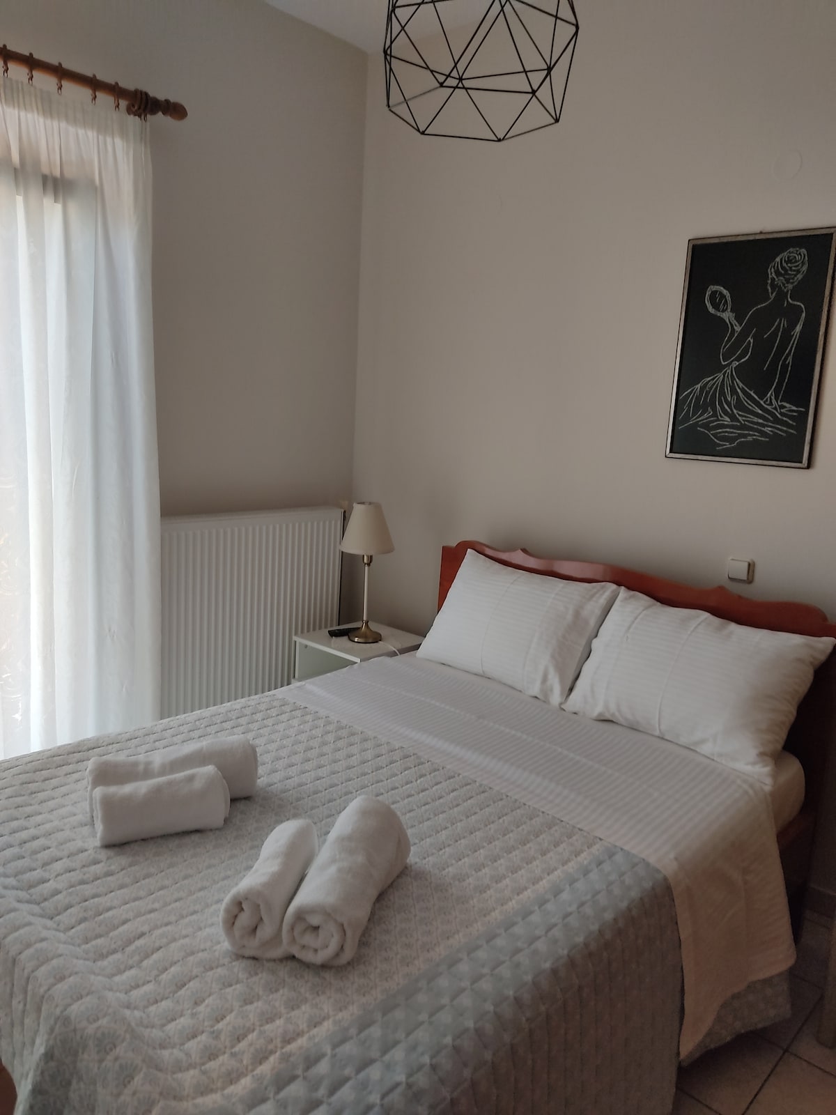 Δίχωρο , 2άρι, 2ου ορόφου, διακοσμημένο με γούστο και μεράκι, πλήρως εξοπλισμένο. Προσφέρεται για όμορφες στιγμές χαλάρωσης όλες τις εποχές του έτους. Σε 50μ απόσταση με τα πόδια, βρίσκονται τα καλύτερα καταστήματα, εστιατόρια και καφέ της πόλης. Το διαμερισμα διαθετει, διπλό κρεβάτι, καναπέ που γίνεται 2 μονά κρεβάτια, ένα διθέσιο καναπές, πλυντήριο ρούχων, πλήρως εξοπλισμένη κουζίνα, καφετιέρα, βραστήρα, τοστιέρα, ηλεκτρικό σίδερο και πάρκινγκ.