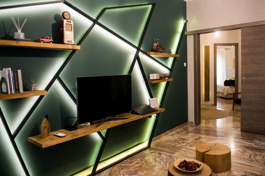 Στην αρχιτεκτονική του σχεδίαση δόθηκε ιδιαίτερη έμφαση στον φυσικό φωτισμό της κατοικίας μέσω των μεγάλων ανοιγμάτων με την δυνατότητα ενοποίησης του εσωτερικού με τονεξωτερικό χώρο προσδίδοντας μια αίσθηση ελευθερίας τόσο στο μάτι όσο και στην κίνηση στον χώρο. Το εξαιρετικά γρήγορο Ιντερνετ 100 mbps, οι τηλεοράσεις Android TV 65” & 50’’ ,το ηχείο της Marshall με εξαιρετικό ήχο το πλέον πλήρες γυμναστήριο του κτιρίου προσδίδουν στον χώρο ότι πιο σύγχρονο για μια άνετη και ευχάριστη διαμονή.