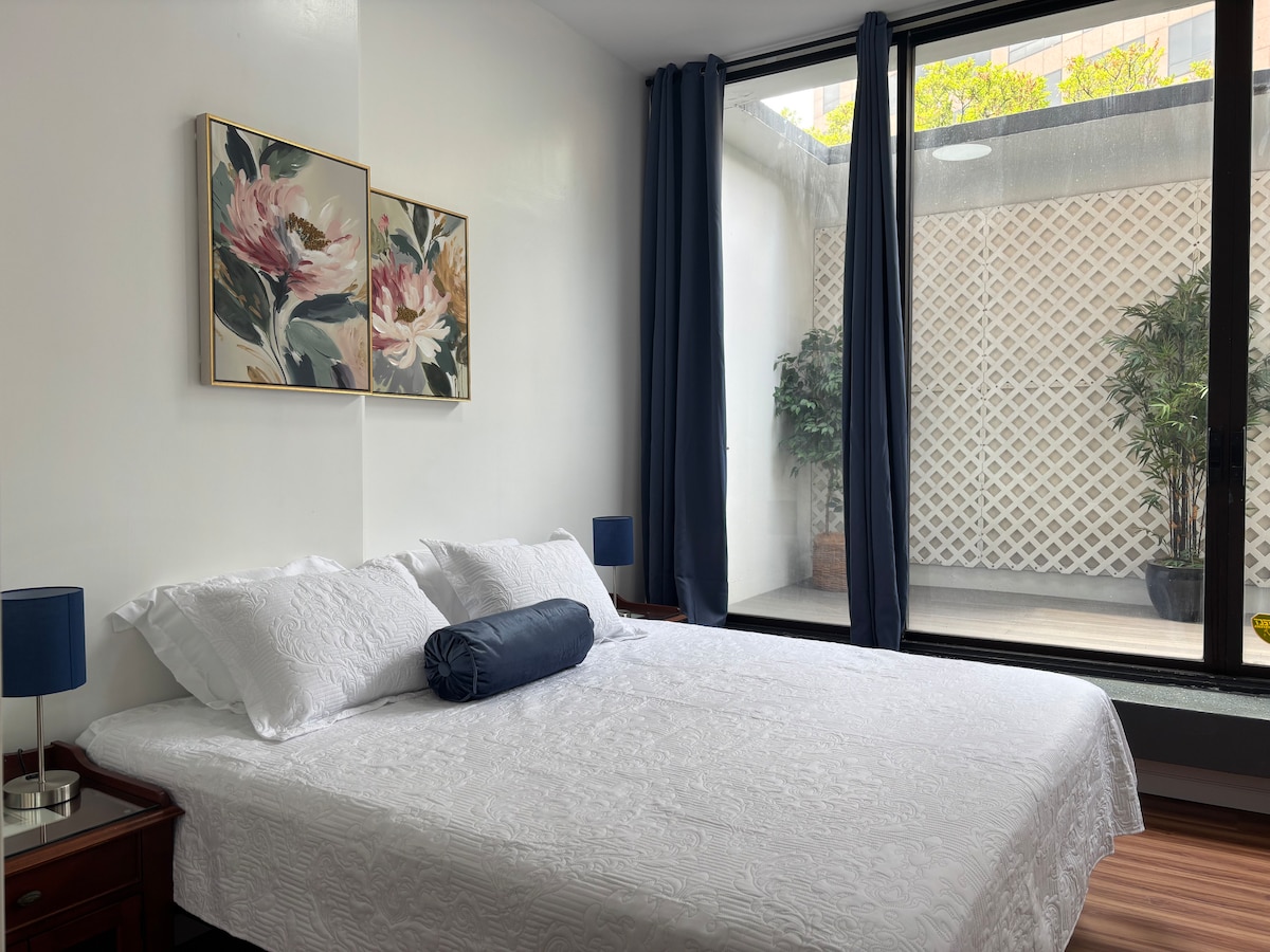 Newly renovated 1BR; central AC, 570 sqft with floor to ceiling windows. Save $35 a night with secured free parking in the building plus free wifi and a fully equipped kitchen. Walk to the best restaurants and bars, Chinatown. The building has great amenities including a lap pool and hot tub, 24/7 security. Starbucks/Ross/grocery on the ground floor for your daily needs.