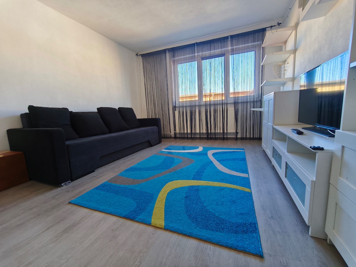 Sudio modern cu 2 camere, situat într-o zonă liniștită. Ideal pentru familie sau un cuplu, acest apartament oferă confort fiind izolat termic si fonic. - Living spațios cu canapea extensibilă, TV cu ecran plat - Dormitor cu pat matrimonial, dulap generos - Bucătărie deschisă, echipată cu aragaz, cuptor, frigider, mașină de spălat rufe - Baie modernă cu cabină de duș cu hidromasaj si radio - Proximitate față de supermarket-uri, restaurante,cafenele, parcuri,spital - Locuri de parcare cu plata