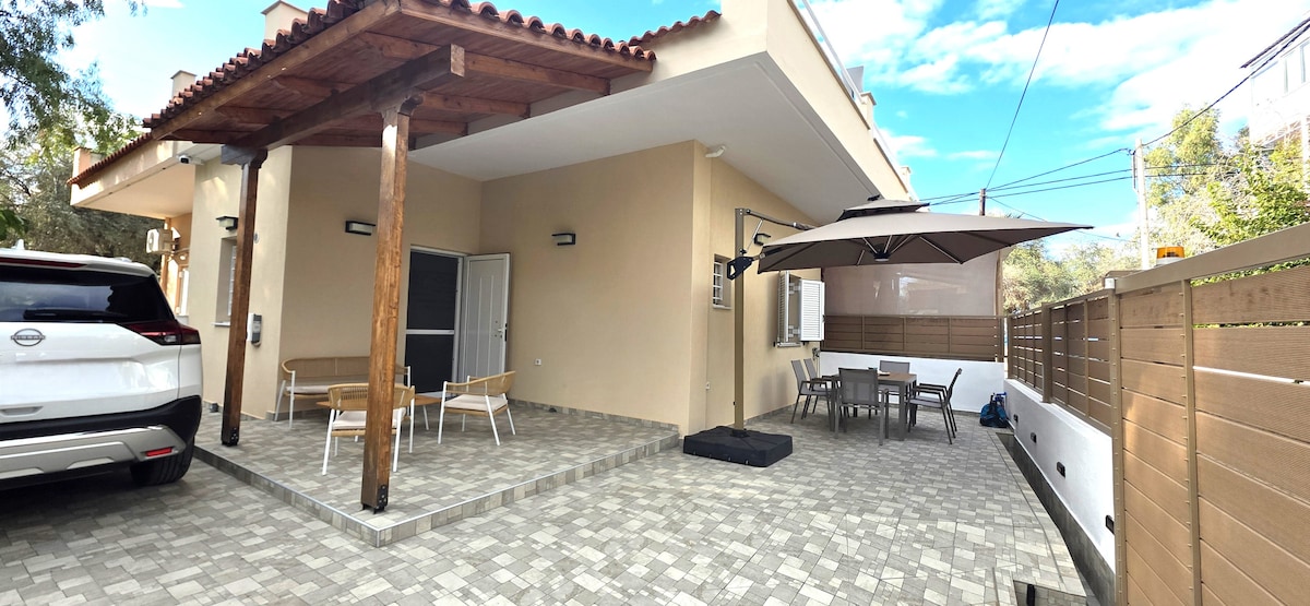 A brand new quiet and comfortable floor apartment on the second floor. It is located in the coastal village of Platanidia of Pelion which is only 15 minutes from the center of Volos and less than an hour from the rest of the picturesque villages of Pelion. Only 10 meters from the sea , the house is ideal for couples, groups, families (with children) and for those who want to combine mountain and sea escapes. Ideal for beautiful moments of relaxation and rest.