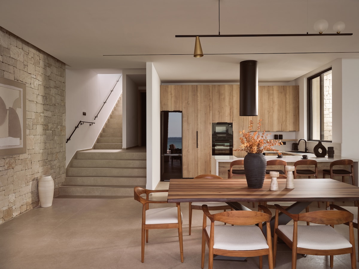 With an abundance of al fresco beachfront activities in which to immerse yourself, you're unlikely to venture too far afield when you take exclusive hire of Esthesis Villa. Complete with outdoor infinity sea water swimming pool (can be heated with an extra fee), in-pool hydromassage features and access to a beach, summer days can be spent in a hive with loved ones. The architectural villa beachfront gem can comfortably welcome up to 6 guests cherish a utopian holiday break with loved ones.