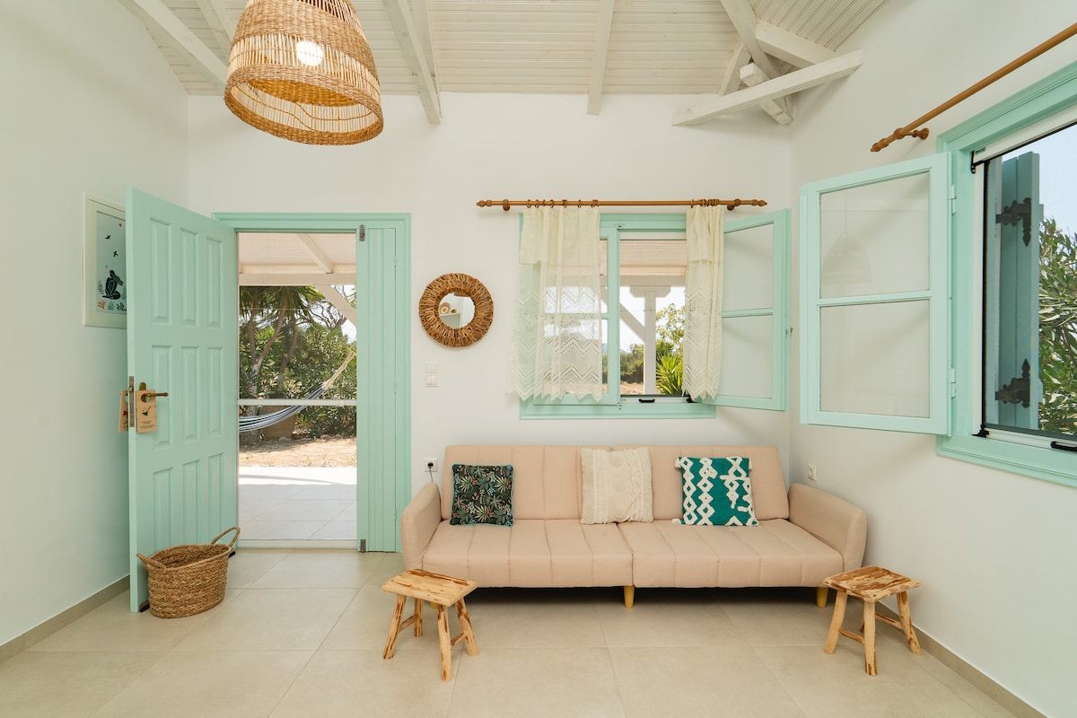 Our bungalows were renovated in 2022 and are designed with sustainable slow tourism in mind. Set on a 5000 sqm plot with native trees and plants, they invite you to connect with nature. Featuring solar water heaters, LED lighting, and materials that are recycled, upcycled, or locally sourced, they reflect our commitment to sustainability. With a Green Pass certification, we operate on 100% renewable energy. Cozy and practical, our bungalows offer the perfect retreat for relaxation and comfort.