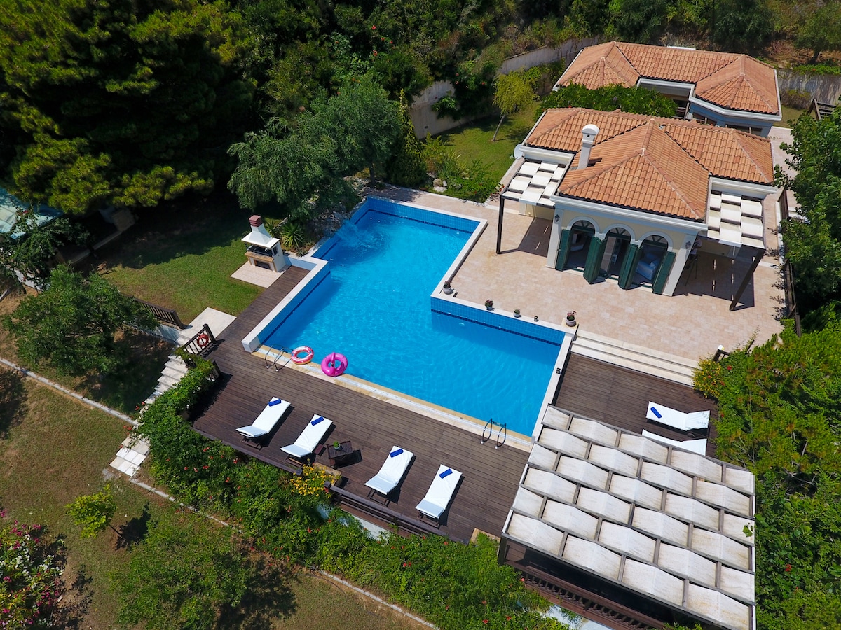 The Bigioli Estate is a luxury retreat in a secluded valley in north-west Corfu, set on a 5000-square-meter park-like property. It includes an elegant villa, a guest house, and a wellness park with a heated pool, jacuzzi, sauna, and fitness room. Fine furnishings, art, and a basketball court enhance its charm. The beaches of Agios Georgios, Arillas, and San Stefanos are 5–15 minutes away by car. A scenic footpath through olive groves leads to the coast, ensuring privacy and tranquility.