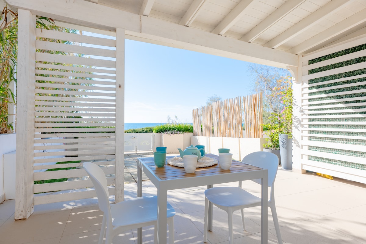Villino fronte mare dotato di ogni confort ,ristrutturato nel 2021, con massima cura dei dettagli, la nostra struttura si trova a 50 metri dal mare (scogliera bassa) da cui si accede con una comoda passerella permanente patio da 30 mq fronte mare con divano parcheggio privato Bagno in corridoio con vaso doccia e lavandino doccia esterna privata angolo lettura o lavoro aria condizionata inclusa cucina con fornelli a gas forno elettrico ventilato lavatrice con spazio per asciugare biancheria