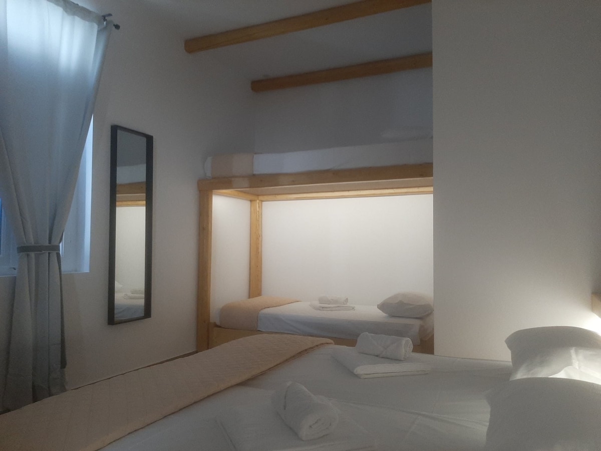 海滩上可容纳4人的房间!