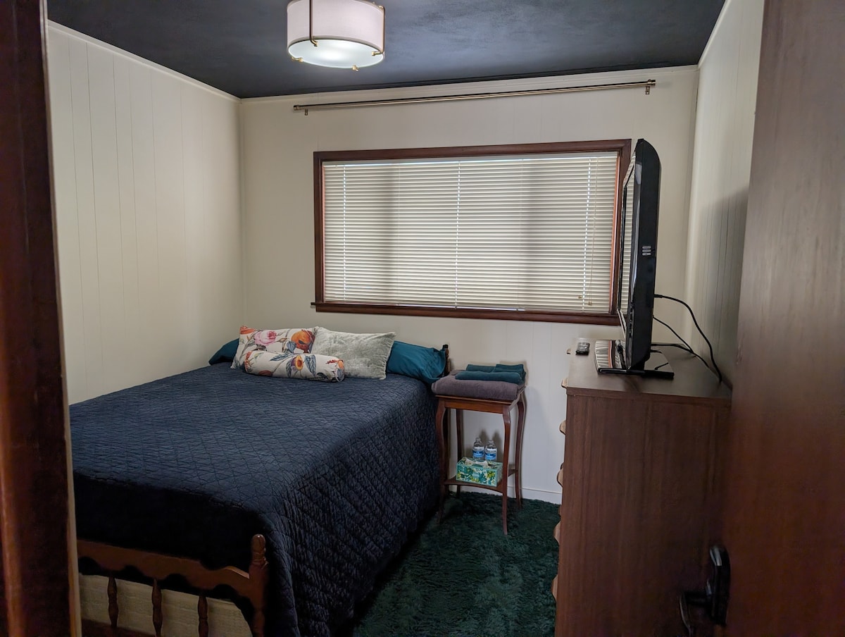 This colorful, mid century, and art inspired home is located less than 10 minutes away from many Cedar Rapids hospitals & clinics, 1/4 mile to the Sac and Fox nature trail, and close to Venues such as the Indian Creek Nature Center, Rosedale Event Center, and Triple Play Park. Whether you are staying for a few days or in town for a while, we hope you enjoy your stay. You have the master bedroom, a king bed, TV, dresser, closet, and desk. All open space on the main floor of the home is shared.