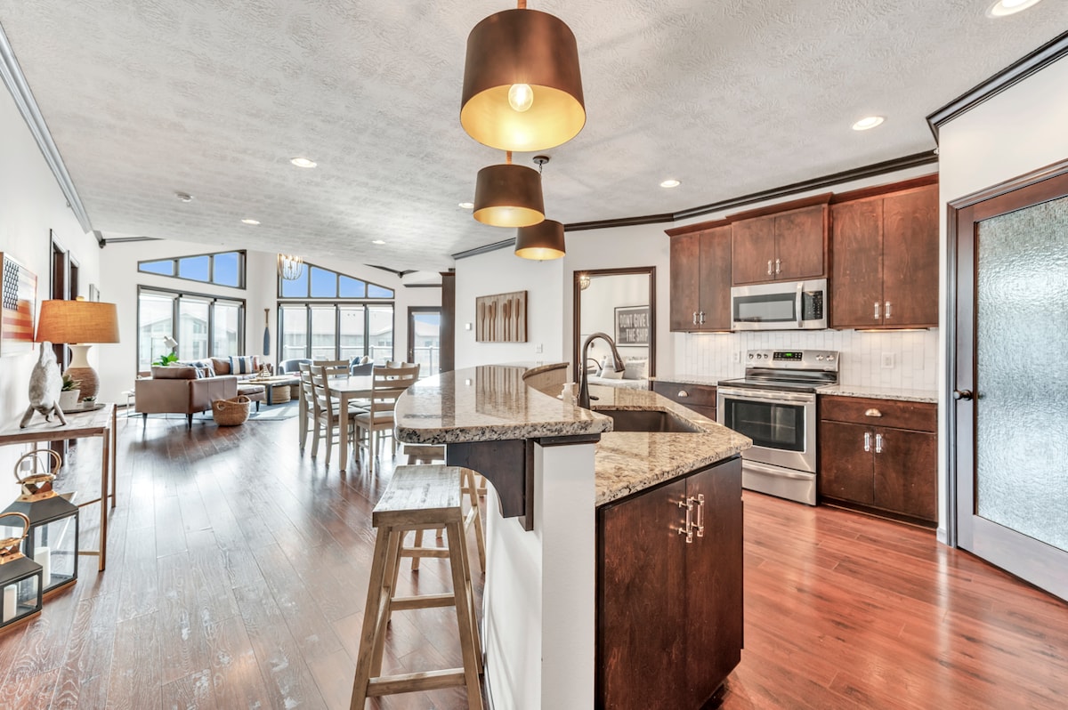 This 3rd story condo is perfectly located in the Historic Old Main district of Dubuque, Iowa. Stay in this high-end condominium close to restaurants, wine studios, shopping, a brewery, wedding venues, and top Dubuque attractions. Equipped with high-end finishes for long and short terms stays such as double sink bathroom vanities, tub/shower combination, stainless steel appliances inc. washer and dryer, 2 queen size beds, and Fiber internet, Smart TVs in both bedrooms and dining room.