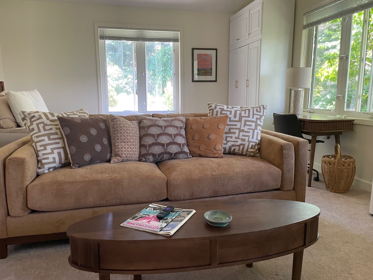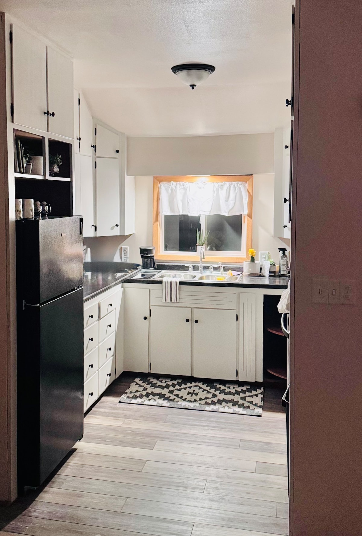 Built in 1900 and renovated in 2022, Suite 2 shows little signs of the once quirky old space. Completely private, with all the amenities, it boasts a spacious bedroom, 1 bathroom, a fully equipped kitchen, dining area, living room with a desk for workspace, and a laundry room. While you're here, we hope you are able to relax and enjoy the well lit deck along with a cup of freshly roasted coffee, which we are happy to have provided.