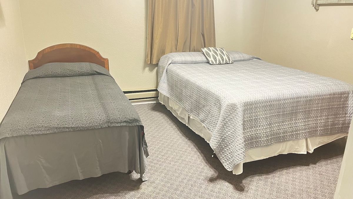 Located in scenic northeast Iowa surrounded by rivers, forests, and thousands of acres of public land access. Area is very popular for hunting, fishing, trout fishing, kayaking, hiking, sightseeing, and many other activities. This room is remodeled and has full size fridge, oven, kitchen sink, microwave, coffee maker and small kitchen table. Equipped with a two queen beds, smart tv, WiFi, shower amenities, and this room has the ability for contactless/self check in.