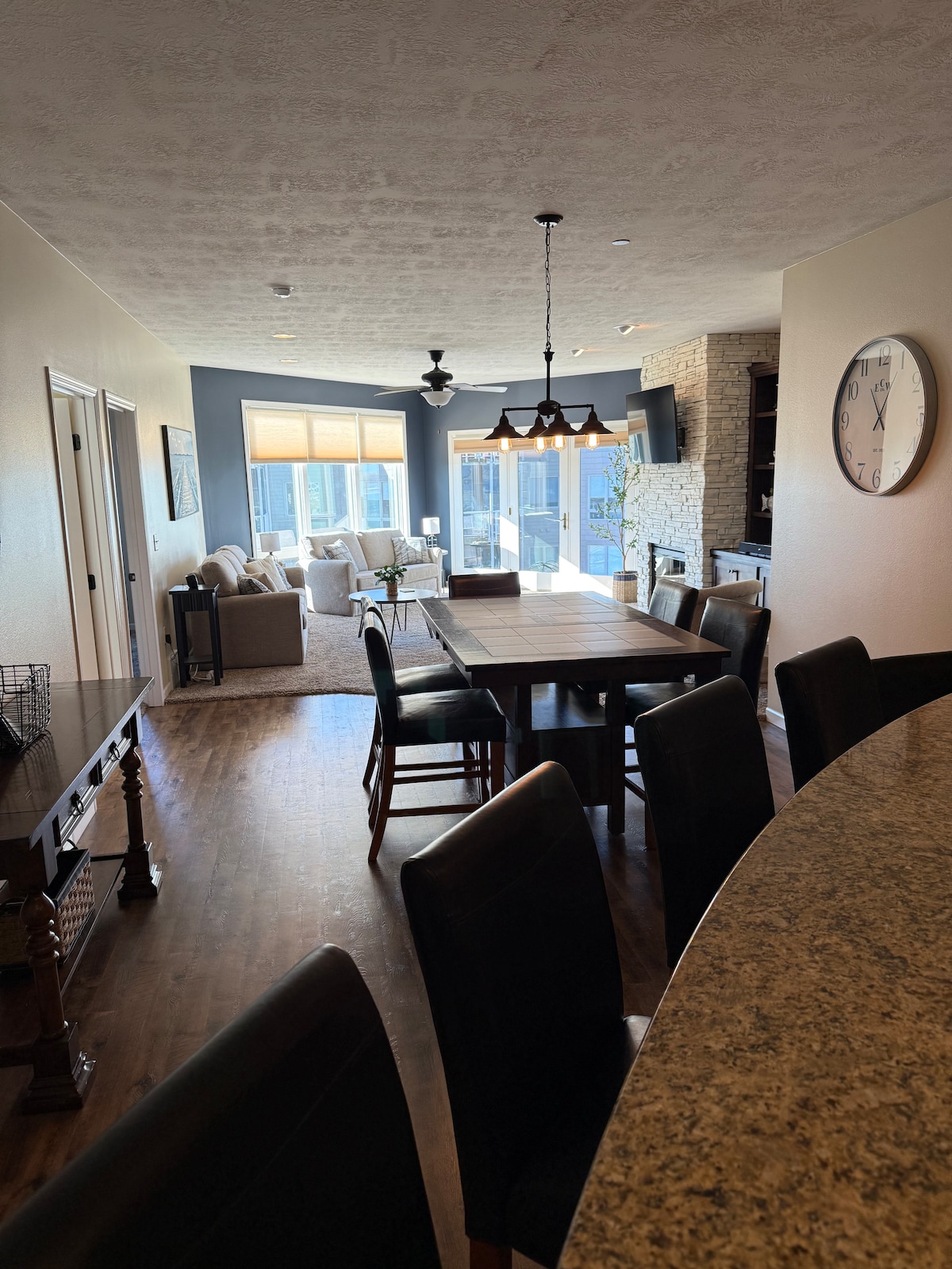 This stylish place to stay is perfect for group trips. Master bedroom with small private bath; including a bonus room. Guest bedroom with 4 beds for kids or large family. Second bathroom with shower/bathtub. Spacious vaulted kitchen living room with tons of seating for lake views, binge watching favorite series, or watching the cook make the magic happen. Longer stays and weddings looking for dates more than 1 year in advance; welcome to message for details and special rates.