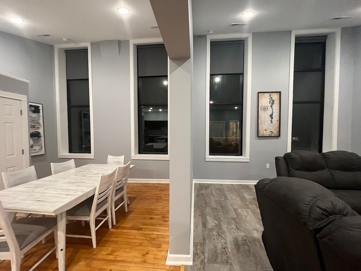 This loft is situated above a small town bustling coffee shop, also overlooking the park in the town square. The space is the perfect combination of old historic charm with a modern urban flair with plenty of natural sunlight streaming through the front windows. The kitchen flows seamlessly into the living room where there are multiple seating options. The bedroom and living room have smart TVs if you want to use your own streaming site. The spa inspired bathroom has numerous amenities included.