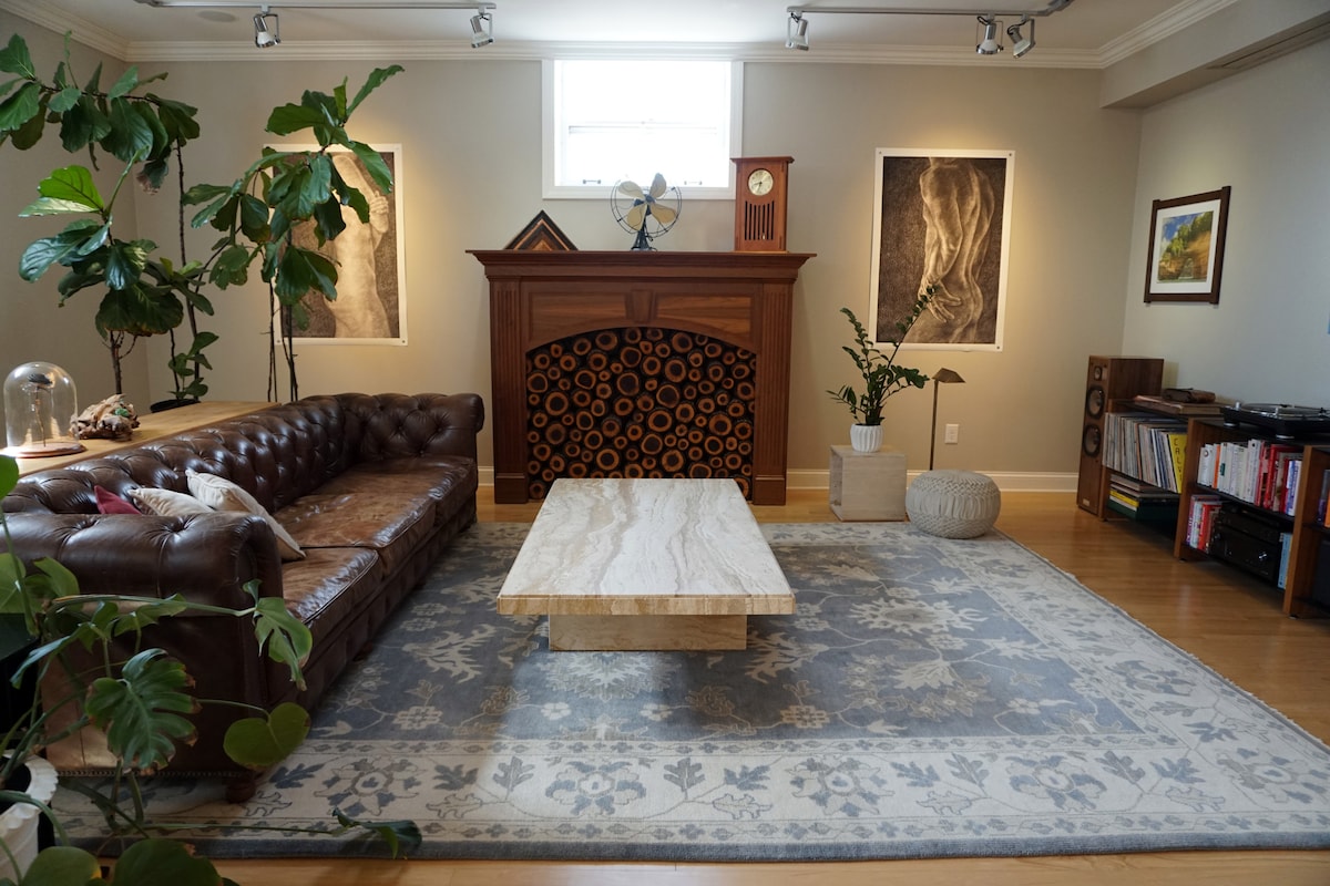 A whimsical, art-filled retreat. Filled with treasured pieces from years of travel and free-spirited living, the loft is now a space for rest, inspiration, and slow mornings. Layered with color, photography, books, and meaningful objects, it’s perfect for guests who love creative, collected spaces. Please note: this is an older urban building with character, multiple stairs, no elevator, and some city noise. Fans, sound machines, blackout curtains, and earplugs are provided.
