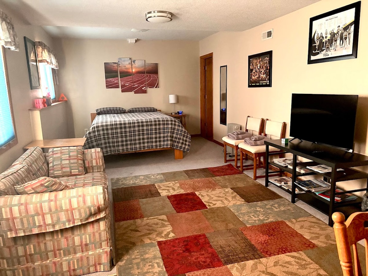 Cozy Studio Near Iowa's Best Attractions! Perfect retreat for sports fans, medical professionals & families • Kinnick Stadium → 1.3 miles • Iowa Soccer Complex → 0.6 miles • Iowa Baseball/Softball Fields → 2.0 miles • UI Hospital → 1.4 miles Free Private Parking: One dedicated space Contactless Self Check-In: Access anytime with easy instructions sent to your phone On-Site Management: Available 24/7 for a seamless and stress-free stay * Private lower-level unit accessed via exterior stairs