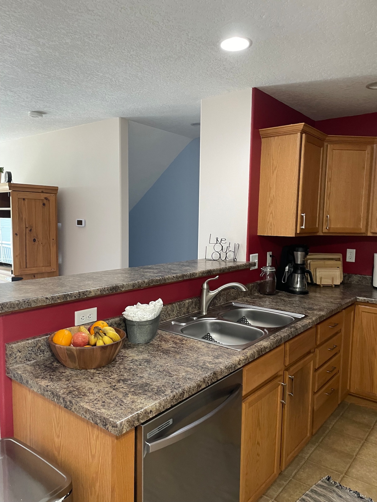 Visit Dubuque In Style Only blocks away from the famous 4th St Elevator is this One-Of-A- Kind 1 KING 1 QUEEN 2 bedroom Townhouse. The main floor is a wide open space ready for fun or relaxation. We pulled out all the stops with this place from a one of a kind bar, dart board, smart TV, plus fast and free internet, and Hulu Live. With Sofa sleeper it sleeps 6. The backyard is perfect to spend the night under the stars. There is plenty of off street parking. We welcome you to our home!