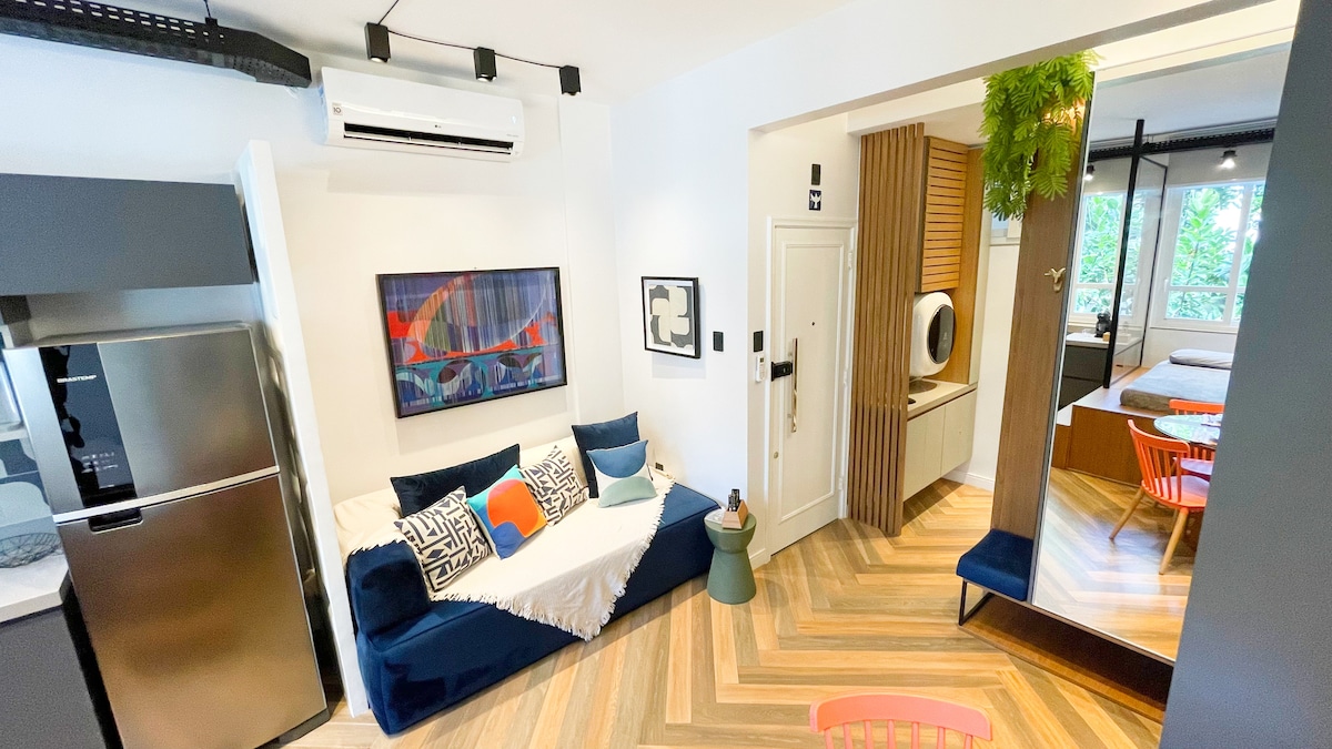 Renovated and modern studio of 25m², located in the heart of Ipanema, 600m from post 9 on the beach and 300m from Lagoa Rodrigo de Freitas. The charming old building is close to the subway (NS da Paz), many of shops, grocery stores, great bars and restaurants. The studio sleeps up to 4 people. It's equipped with high quality utensils, bed linen and towels and 300MB internet. *Parking at the Ipanema Forum, 300m from the apartment for R$50/day, paid separately as an additional service.