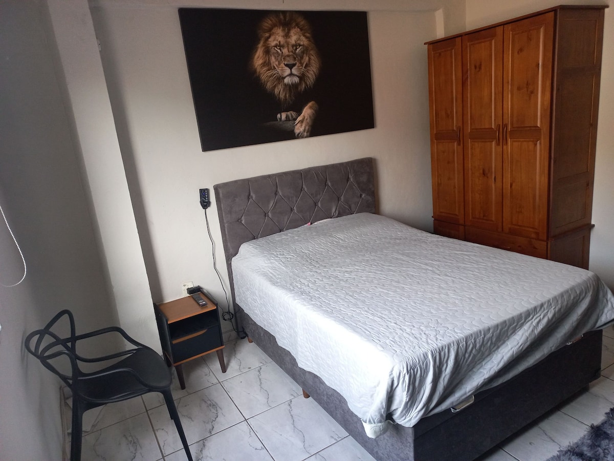 Ambiente confortável e fiel as fotos postadas. Possibilidade de usar garagem se confirmar a necessidade e disponibilidade com o anfitrião antes da estadia . Oferecemos ar condicionado split, ventiladores e internet de alta velocidade. Acomodamos com excelência 2 pessoas em cama de casal e roupas de cama de algodão. Caso, você queira trazer mais de 2 hóspedes, eles deverão dormir em colchão no chão e são bem vindos.